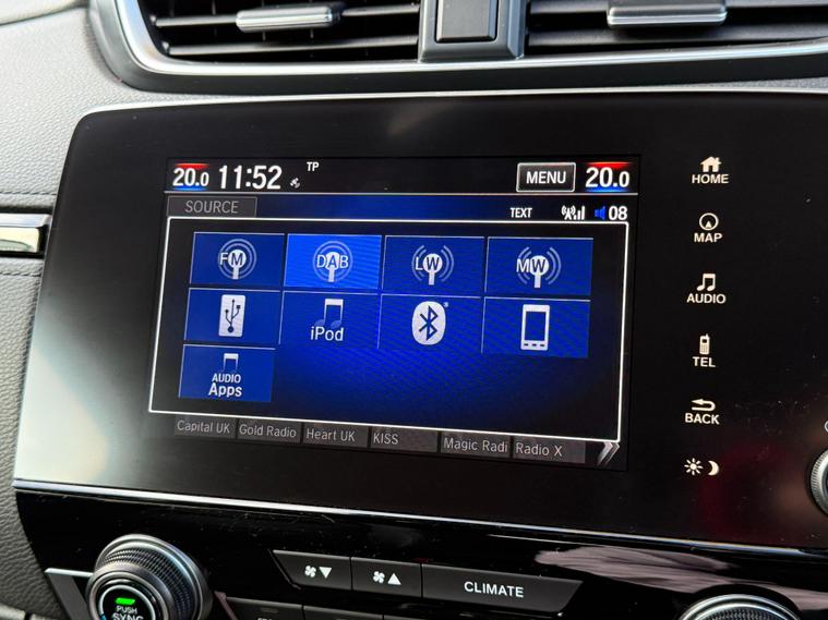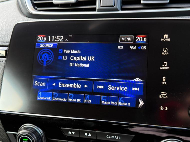 This 2022 Honda CR-V i-MMD EX is a Honda manufacturer approved vehicle, boasting a full dealership service history for your peace of mind. This stylish SUV features a responsive 2.0L Petrol Hybrid engine paired with a Four Wheel Drive drivetrain, ensuring capable performance in various conditions. As a Euro 6 compliant model, it meets modern emission standards. The EX trim level comes equipped with a suite of advanced features, including a helpful Rear View Camera with parking assistance, a sophisticated Head Up Display to keep your eyes on the road, and Adaptive Cruise Control for effortless journeys. You'll also appreciate the convenience of Wireless Charging for your compatible devices and bright, efficient LED Headlights.