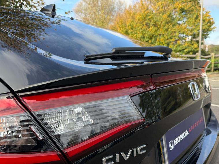 This 2024 Honda Civic i-MMD Elegance presents an exceptional ownership proposition, having been meticulously maintained by with a full dealership service history and Honda manufacturer approval. This Euro 6 compliant model boasts a responsive 2.0L petrol hybrid engine, offering an impressive fuel economy of 60 mpg. Its Elegance trim level ensures a refined driving experience, complemented by practical features such as LED headlights for enhanced visibility and a generous boot space for all your needs.
