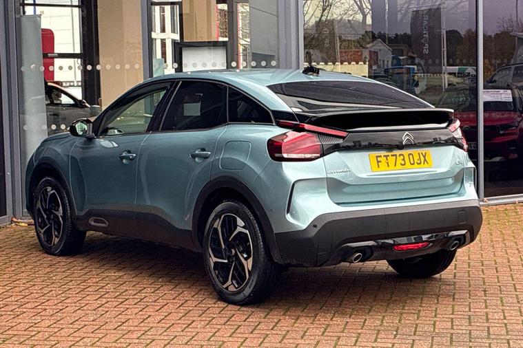 This 2023 Citroen C4 MAX is a Citroen manufacturer approved vehicle, boasting a full service history and having had only one owner from new. This stylish hatchback is equipped with a responsive 1.2 litre petrol engine, meeting Euro 6 emission standards. Inside, you'll find the My Citroen Drive Plus system, offering seamless integration with Android Auto and Apple CarPlay, alongside Bluetooth connectivity. Comfort is enhanced by a heated steering wheel, and parking is made effortless with front, rear, and lateral parking aids, complemented by a Top Rear Vision reversing camera. For added safety, it features Active Blind Spot Detection.