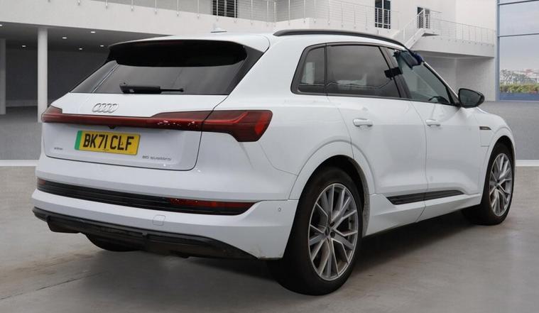 Audi E-Tron 230kW 50 Quattro 71kWh Black Edition 5dr Auto EXCELLENT SPEC AND CONDITION WITH COST OPTIONS OF METALLIC WHITE WITH UPGRADED EXTENDED TWIN LEATHER, ELECTRIC OPENING PANORAMIC SUNROOF, PRIVACY GLASS, BLACK ROOF PLUS ALL BLACK EDITION FEATURES. MATRIX LIGHTS, 21 " ALLOYS 1 OWNER, VAT Q, 2 KEYS, HPI CLEAR, SAT NAV, REAR CAMERA, ELECTRIC TAILGATE, ELECTRIC SEATS, LUMBAR SUPPORT, HEATED SEATS PLUS SO MUCH MORE., 5 seats, White, 1 owner, 11 kW Onboard Charger, 2 USB C Ports with Charging Functionity in the Rear, 2-Zone Automatic Air Conditioning, 21in Alloy Wheels - 9.5J 10-Spoke Rotor Gloss Anthracite Black Audi Sport - Diamond Cut, 3-Spoke Flat Bottom Multi-Function Leather Steering Wheel with Paddles for Recuperation, 4-Way Lumbar Support for Front Seats, ABS - Anti-Lock Braking System, AC and DC Charging Access Point on Drivers Side and Second AC Charging Access Point on Passenger Side, AMI - Audi Music Interface - Front, Active Vehicle Alerting System - AVAS, Adaptive Air Sport Suspension, Airbags - Driver, Anti-Theft Alarm, Anti-Theft Wheel Bolts and Wheel Loosening Warning, Audi Connect, Audi Connect Safety and Service - e-call, Audi Drive Select, Audi Matrix LED Headlights and Dynamic Front and Rear Indicators with Coming and Leaving Home Animations, Audi Pre-Sense Front and Basic, Audi Smartphone Interface Includes Wireless Functionality, Audi Sound System, Audi Virtual Cockpit, Auto Dimming and Frameless Rear View Mirror, Black Roof Rails, Black Styling Pack, Bluetooth Interface, Cloth Headlining in Black, Comfort Centre Armrest - Front, Compact e-tron Charging System, Cruise Control with Speed Limiter, DAB Digital Radio, Door Mirrors - Black, Door Mirrors - Electrically Adjustable - Heated - Folding - Automatically Dimming with Memory Function with Kerb View Function for Passenger Side, Electric Windows - Front and Rear, Electrically Adjustable Front Seats including Memory Function for Drivers Seat, Extended Twin Leather Pack, First Aid Kit and Warning Triangle, Front Sports Seats, Front and Rear Floor Mats, Heated Front Seats, Household Plug Type G - GB, ISOFIX Child Seat Mounting for Front Passenger Seat with Front Passenger Airbag Deactivation, ISOFIX Child Seat Mounting for Outer Rear Seats, Illuminated Door Sill Trims with Aluminium Inlays - Front and Rear with S Logo in Front, Industry Plug CEE 32 A-230 V, Inlays - Darkened Matt Brushed Aluminium, Keyless Go, LED Interior Light Package, LED Rear Lights, Lane Departure Warning, Luggage Compartment Cover, Luggage Compartment Floor, MMI Navigation Plus with MMI Touch - Twin Touch Screens with Haptic Feedback, Manual Steering Column Adjustment, Mode 3 Type 2-AC Charging Cable 22kW, Operating Buttons in Black - Glass Look with Haptic Feedback, Parking System Plus with 360 Degree Sensors and Function-On-Demand Preparation, Power Operated Tailgate, Privacy Glass, Progressive Steering, Rear View Camera, Removable Net Partition, Side Airbags - Front and Head Airbag System, Sun Visors with Illuminated Vanity Mirrors, Tool Kit, Tyre Mobility System, Tyre Pressure Warning Light, Vehicle Inlet Combo 2 - EU CCS, Windscreen with Acoustic Glazing, EXCEPTIONAL HPI CLEAR CARS. 12 MONTHS AA BREAKDOWN COVER. FULL DEALER FACILITIES, £24, 500