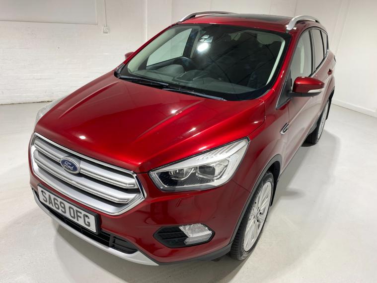 2019 69 Reg Kuga 2.0 TDCi (120PS) TITANIUM X EDITION AUTOMATIC 5dr. Ruby Red metallic with Ebony FULL LEATHER interior with electric driver's seat 10-way adjust, HEATED FRONT SEATS, 19 inch alloy wheels, SYNC 3 SATELLITE NAVIGATION, Apple Car Play, Android Auto, POWER OPENING PANORAMA ROOF, KEYLESS OPENING & POWER HANDS FREE TAILGATE, Bi-XENON headlights, PRIVACY GLASS, REAR PARKING SENSORS, alloys, Dual ATC AIR CON, cruise control, auto wipers, auto lights, keyless start with Ford power button, Quickclear heated windscreen, Thatcham alarm, power heated and folding door mirrors, front and rear electric windows, front and rear curtain air bags, 5, 312 miles (SA 69 OFG).