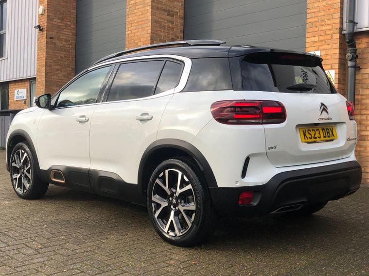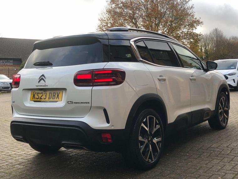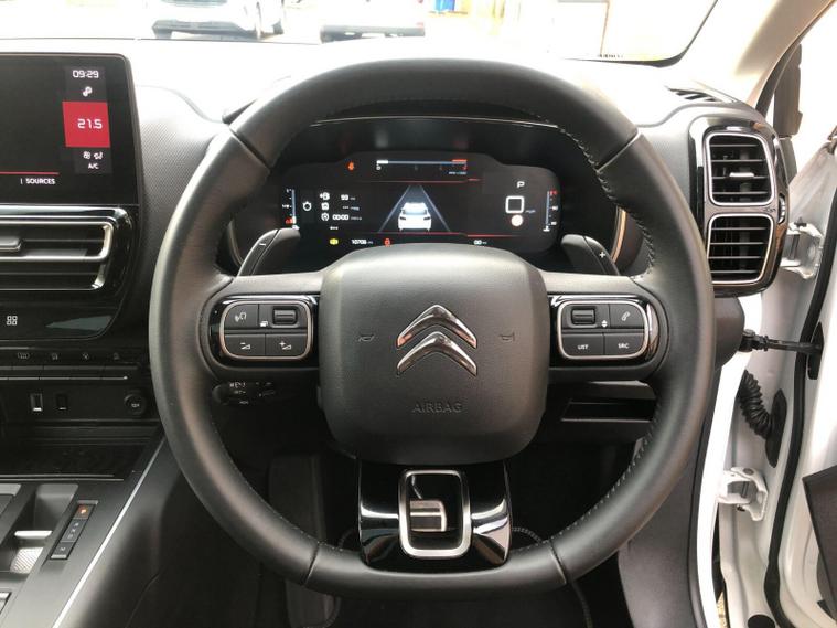 This 2023 Citroen C5 Aircross BlueHDi C Series Edition presents an exceptional opportunity with its remarkably low mileage of just 10706 miles, making it a standout choice for discerning buyers. As a Citroen manufacturer approved vehicle, it offers peace of mind alongside its stylish design and practical features. This Euro 6 compliant model is equipped with a 1.5 litre diesel engine, delivering an impressive fuel economy of 54 miles per gallon. Inside, you'll find the Citroen Connect Play system, seamlessly integrating Android Auto and Apple CarPlay for effortless connectivity. Comfort and convenience are further enhanced by electric, heated, and folding door mirrors with LED approach lighting and blind spot monitoring indicators, while the Drive Assist Pack, including adaptive cruise control and highway driver assist, adds an extra layer of safety and ease on longer journeys. The acoustic laminated windscreen with rain and brightness sensors ensures optimal visibility in all conditions, and the opening panoramic roof with its electric sunblind creates a bright and airy cabin.