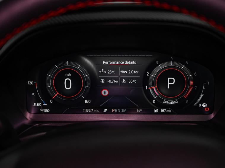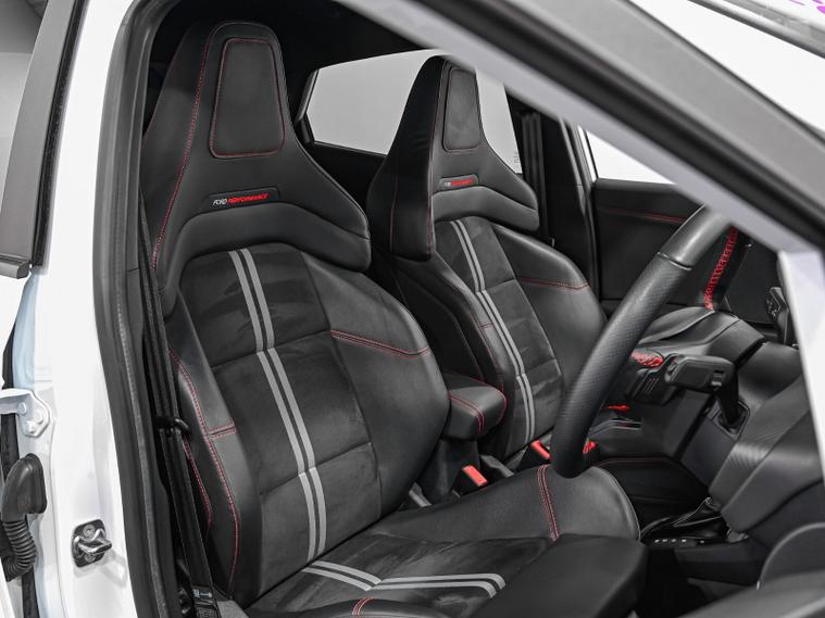 Finished in Frozen White with Ford Performance Sports Seats with a leather and Miko Dinamica finish.