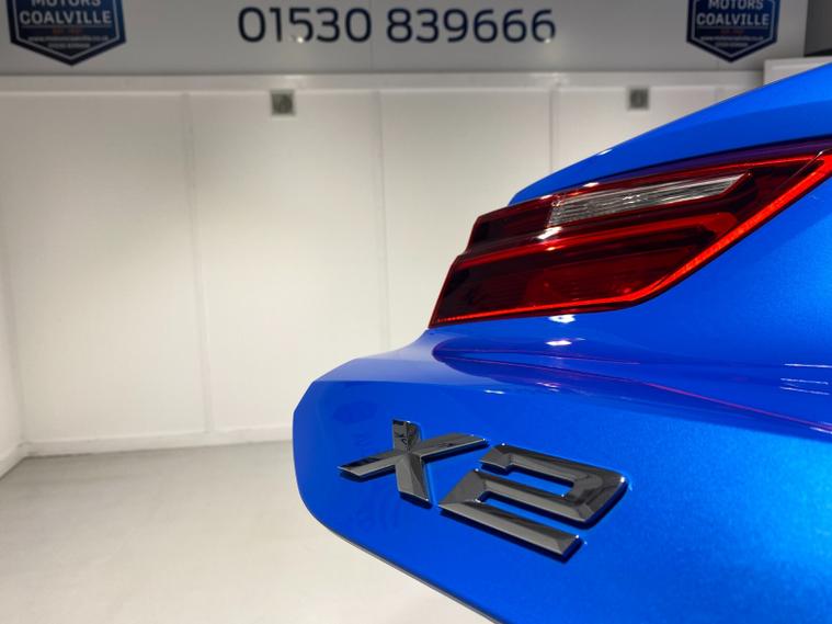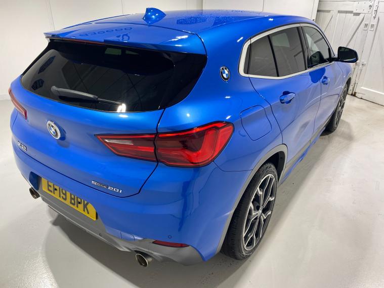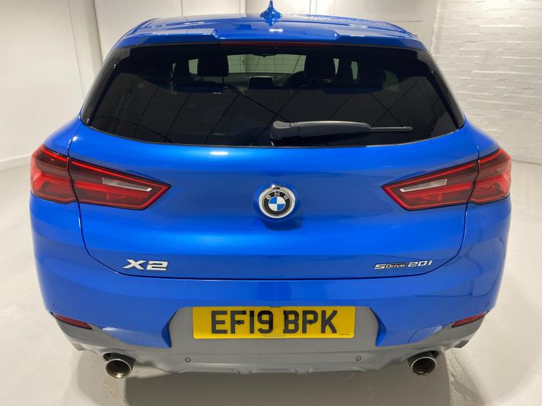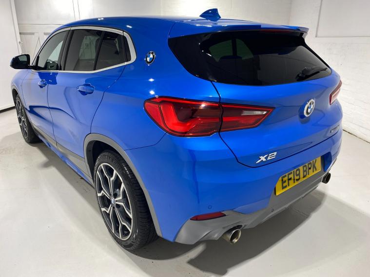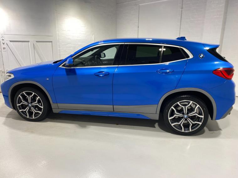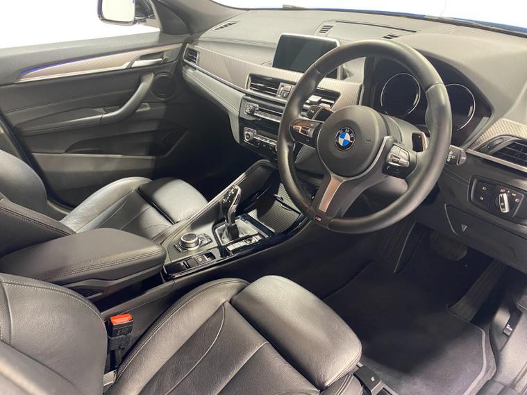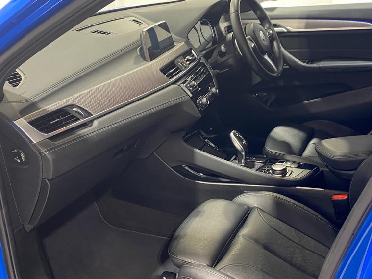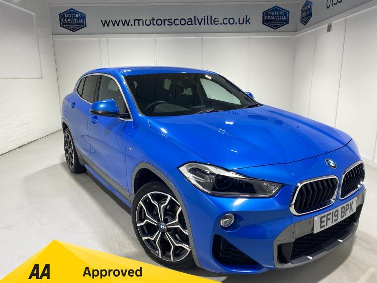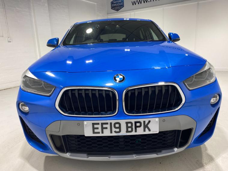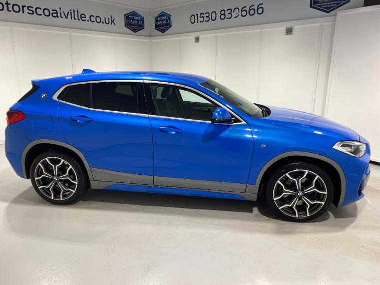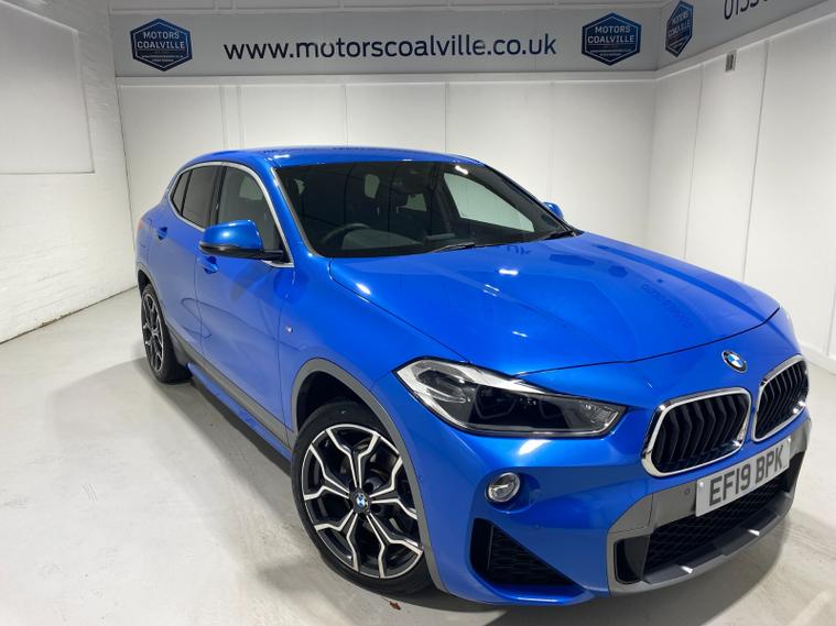 2019 19 Reg BMW X2 2.0i (192PS) DCT Automatic M Sport X 5 dr. Misano Blue metallic with Black Dakota LEATHER sports interior, HEATED FRONT SEATS, BMW DAB SATELLITE NAVIGATION, Bluetooth & USB, 19 inch M light alloys, matt aluminium roof rails, Cruise control, Electric Heated Mirrors, Electric Front and Rear Windows, privacy glass, rear spoiler, full LED headlights, Auto Air Con, Auto Lights and Wipers, PDC Parking Distance Control, tyre pressure monitoring system, Push Button Start, DSC, Thatcham Cat 1 alarm, 48, 952 miles (EF 19 BPK).
