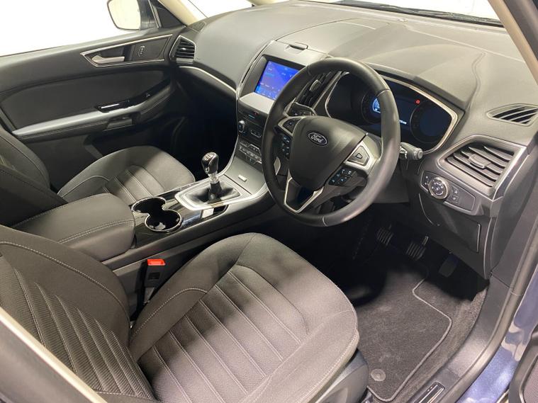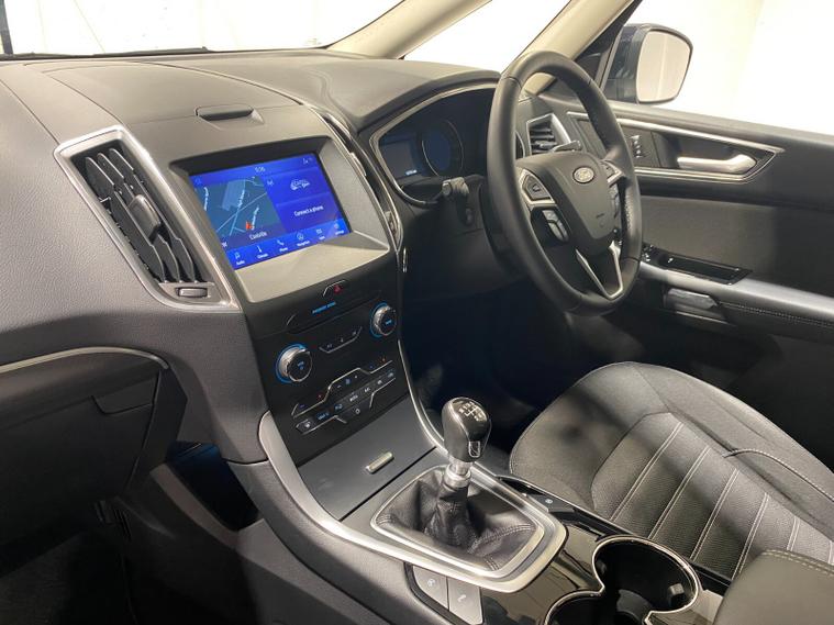 2022 72 Reg Ford Galaxy 2.0 TDCi (150PS) TITANIUM 6spd Manual **7 seater** 5dr. Blue Panther metallic with Ebony cloth interior, TOUCHSCREEN SYNC 3 DAB and NAVIGATION SYSTEM, Bluetooth and voice control, KEYLESS ENTRY, FRONT and REAR PARKING SENSORS, Electric handbrake, Lane Keeping Aid, Traffic Sign recognition, power start button, Dual Zone ATC AIR CONDITIONING, power easy fold flat 3 row seats, cruise control with speed limiter, PRIVACY glass, auto wipers and lights, IPS system, ESP, Tyre Pressure monitor system, power front and rear windows with global closing, quickclear heated windscreen, remote locking, Thatcham alarm, ABS, 6, 640 miles (DY 72 KGF).
