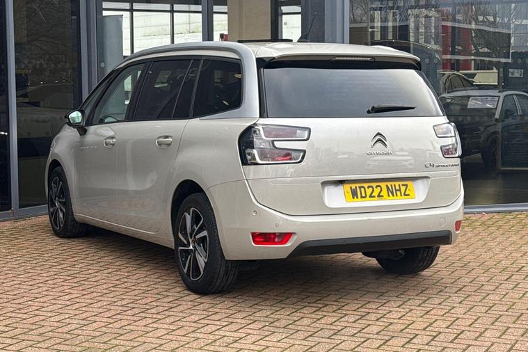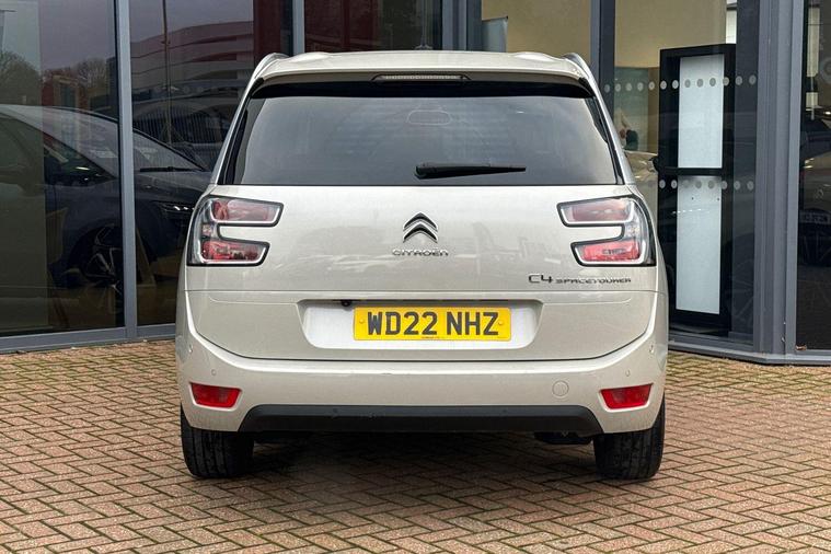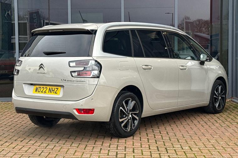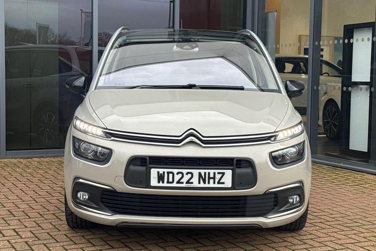 This 2022 Citroen Grand C4 SpaceTourer Shine is a Citroen manufacturer approved vehicle, boasting a full service history and a 12 month warranty for your peace of mind. This 7 seat MPV is powered by an efficient 1.2L Petrol engine and meets Euro 6 emission standards. It has had only one owner since new. Notable features include striking Double Xenon Headlights, a fixed Panoramic Sunroof that floods the cabin with light, and a Reversing Camera complemented by Rear Parking Sensors to assist with manoeuvring. For effortless journeys, it is equipped with Active Cruise Control with Speed Limiter and Braking Function.