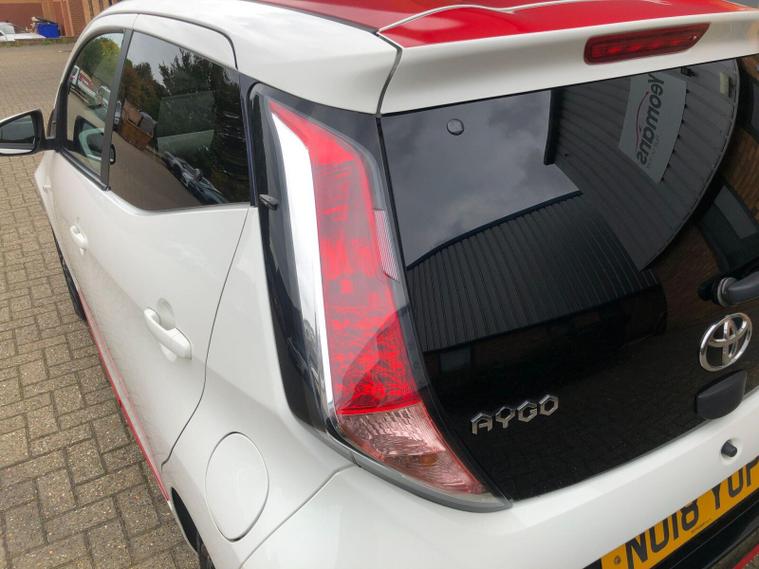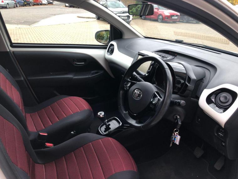 This 2018 Toyota AYGO VVT-i x-press is a Toyota manufacturer approved vehicle, offering peace of mind. It features a responsive 1.0L petrol engine and meets Euro 6 emissions standards. Inside, you'll find the x-touch 7in multimedia touch screen, which includes Bluetooth connectivity and parking assistance with a rear camera. For convenience, this AYGO also boasts dusk sensing headlights that automatically turn on when light levels drop, and automatic air conditioning for a comfortable cabin temperature.