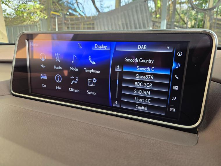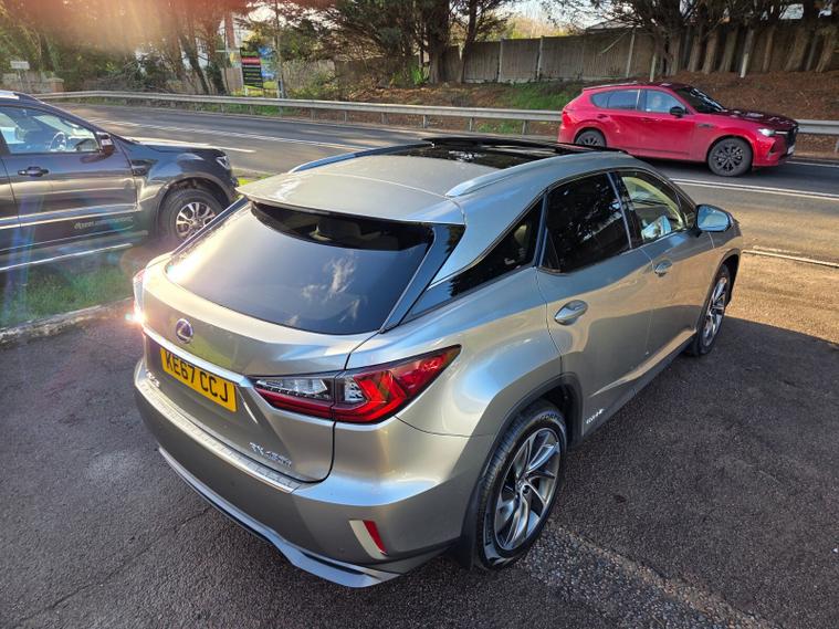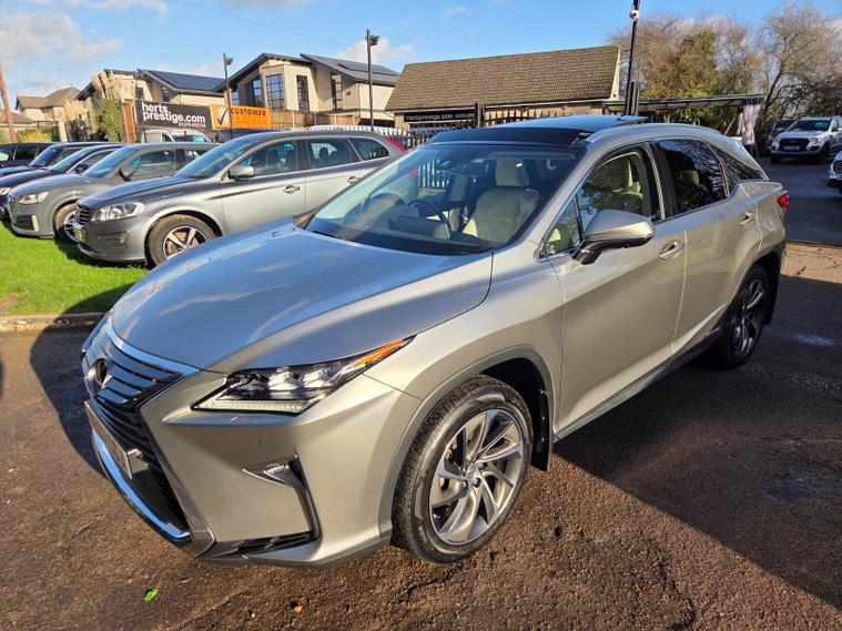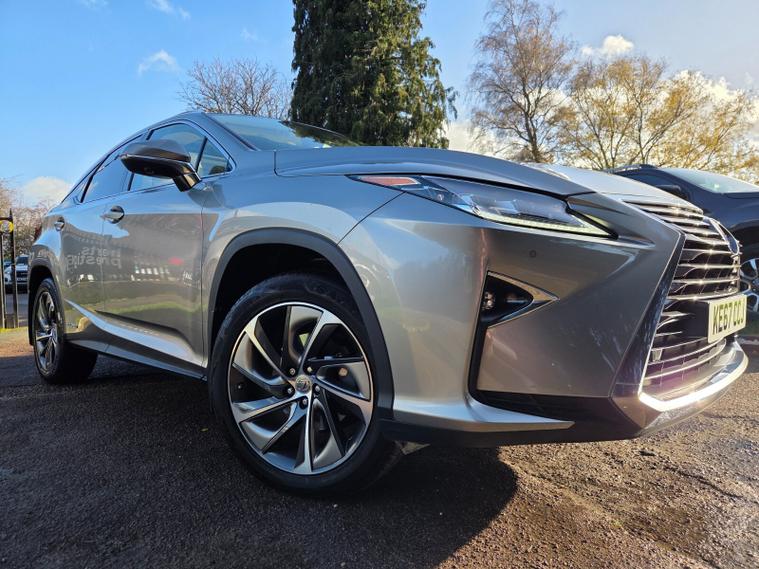 Lexus RX 450h 3.5 Premier 5dr CVT [Sunroof] FANTASTIC SPEC WITH VERY LOW MILEAGE, LOVELY COLOUR COMBINATION, This 2017 Lexus RX 450h Premier boasts an exceptionally low mileage of just 43, 000 miles, complemented by a full service history, offering peace of mind for its next owner. This Four Wheel Drive model features a powerful yet efficient 3.5L Petrol Hybrid engine, meeting Euro 6 emissions standards. The Premier trim level ensures a luxurious experience, enhanced by a colour head up display, a premium Mark Levinson audio system, and Lexus Premium Navigation with a rear camera for effortless parking. Comfort is further elevated with electrically adjustable heated wooden steering wheel and front seats that are both heated and ventilated., , The Lexus RX 450h Premier demonstrates its superior performance with an impressive 0-62mph acceleration time of just 7.7 seconds, showcasing the dynamic capabilities of its hybrid powertrain. These highlights, along with its low insurance group rating, indicate that this vehicle offers a more refined and cost effective ownership experience compared to other similar models on the market., Full service history, 5 seats, METALLIC, 3 owners, 2 Map Pockets in the Rear, 20in Alloy - Velvet Black Inserts, 2x Sun Visors with Vanity Mirror and Lamp, 2x USB Sockets, 3 x 12V Power Outlet Sockets, 3-Eye Shaped LED Headlights with Active High Beam System, 360 Panoramic View Monitor, 4-Way Electrical Lumbar Adjustment, 4x Tie Down Hooks in Boot, 5 Driving Modes - Normal - EV - Eco - Sport and Sport+, 60-40 Split Folding Rear Seat with 40-20-40 Folding Ability - Manual Remote Release, ABS - Anti-Lock Braking System, ACC - Adaptive Cruise Control, AUX Socket with VTR Compatibility, Airbags - Driver Knee, Airbags - Front Passenger Cut Off Switch, Airbags - Passenger Cushion, Airbags - Rear Passenger Side, Analogue Lexus Clock, Anti-Theft System, Armrest - Front Centre with Storage, Armrest - Rear with Storage, Auto Dimming Rear View Mirror, Autonomous Emergency Braking, BAS - Brake Assist System, BSM - Blind Spot Monitor System with RCTA - Rear Cross Traffic Alert, Bluetooth Connectivity, Card Holder Installed In the Drivers and Passengers Sun Visors, Card Key - In Addition to Standard Keys, Centre and Rear Armrest with 2 Cup Holders, Climate Concierge, Colour Head Up Display, Curtain Shield Airbags - Front and Rear, DAB Radio, Daytime Running Lights - LED, Driver and Front Passenger 2-Stage Airbags, Driver and Front Passenger Side Airbags, Driver and Passenger 10-Way Electrically Adjustable Front Seats, Dual Zone Climate Control Air Conditioning System with S Flow and Nanoe Technology, EBD - Electronic Brakeforce Distribution, ECB - Electronically Controlled Braking, EPB - Electronic Parking Brake, Electric Windows - Front and Rear, Electrically Adjustable Heated Wooden Steering Wheel, Front Seat Belts with Pre-Tensioners - 3 Point ELR - Emergency Locking Retractor, Glasses Holder in Roof Lighting Panel, HAC - Hill Assist Control, Headlight Cleaners, Heated - Auto-dimming - Auto-folding Outside Mirrors with Memory Function - Reverse Tilt Function - Turn Indicators and Puddle Light, ISOFIX Child Restraint System - Rear x2, Intelligent Parking Assist Sensors - 2x Front and 4x Rear, LED Aluminium Scuff Plates, LED Brake Lights and Rear Lights with Emergency Brake Signal, LED Cornering Lights, LED Front Fog Lights, LED Front and Rear Sequential Indicators, LED Interior Illumination, Lane Change Flasher Function, Laser Cut Dark Wood with Aluminium Inlay, Leather Gearlever, Lexus Premium Navigation, Lexus Safety System Plus, Locking Wheel Nuts, Mark Levinson Audio System, Memory Function for Driver and Passenger, Multi-Information Display 4-inch TFT, Panoramic Roof, Power Steering - Electric, Powered Tailgate with Kick Sensor, Privacy Glass, Push Start Button, Rain Sensitive Windscreen Wipers, Rear Door Sun Shades, Reclining and Sliding Rear Seats, Reversing Camera, Roof Rails, Seats - Front Heated and Ventilated, Shopping Bag Hooks x2, Small Compartment to Right of Steering Wheel, Smart and Easy Entry, Smartphone Wireless Charger, Suspension - AVS-Adaptive Variable Suspension, TPWS - Tyre Pressure Warning System, TRC - Traction Control System, Temporary Spare Wheel, Textile Carpet Mats, Two Motion Door Lock - Double Lock, Unique LED Illumination - Instrument Panel, VDIM - Vehicle Dynamics Integrated Management, VSC - Vehicle Stability Control, WIL - Whiplash Injury Lessening Front Seats, Window Etching, EXCEPTIONAL HPI CLEAR CARS. 12 MONTHS AA BREAKDOWN COVER. FULL DEALER FACILITIES, £25, 000