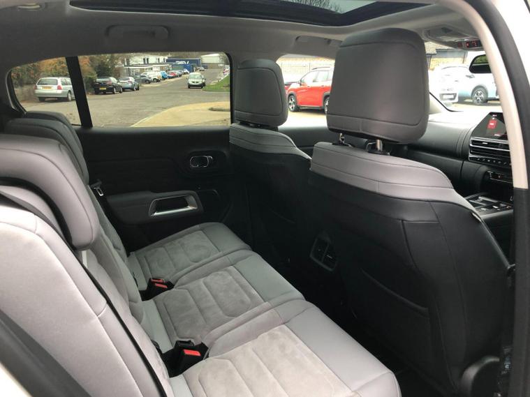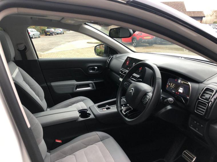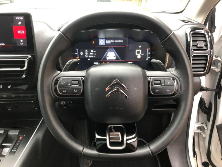 This 2023 Citroen C5 Aircross e series is a Citroen manufacturer approved vehicle, offering peace of mind. It features a 1.2 litre petrol hybrid engine and meets Euro 6 emission standards. This model comes equipped with the City Camera Pack, which includes front and rear parking sensors and a rear camera, making manoeuvring easier. You'll also find electric, heated, and folding door mirrors with LED approach lighting and blind spot monitoring indicators, enhancing safety and convenience. Automatic headlights with welcome and goodbye lighting, along with an acoustic laminated windscreen featuring rain and brightness sensors, ensure optimal visibility in all conditions. Furthermore, enjoy the open air with the opening panoramic roof and its electric sunblind.