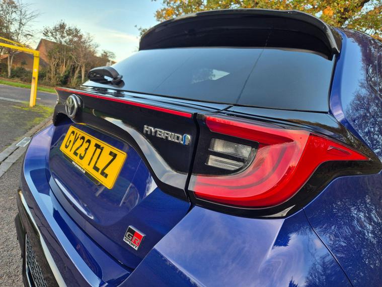 With only one owner and a mere 12, 167 miles on the clock, this 2023 Toyota Yaris VVT-h GR SPORT represents exceptional provenance. This Euro 6 compliant hybrid petrol model boasts a 1.5L engine and comes with a 12 month warranty for your peace of mind. Its MOT is valid until May 2026, and it benefits from a full service history, with the last service completed on 2025-11-28 at 12, 167 miles. Notable features include the City Pack, which incorporates Blind Spot Assistance and front and rear parking sensors, alongside Smart Entry for keyless access. Stay connected with smartphone integration, including Apple CarPlay and Android Auto, and enjoy the convenience of remote air conditioning via the MyT app. Toyota Safety Sense 2 is also included, featuring Adaptive Cruise Control for a more relaxed driving experience.