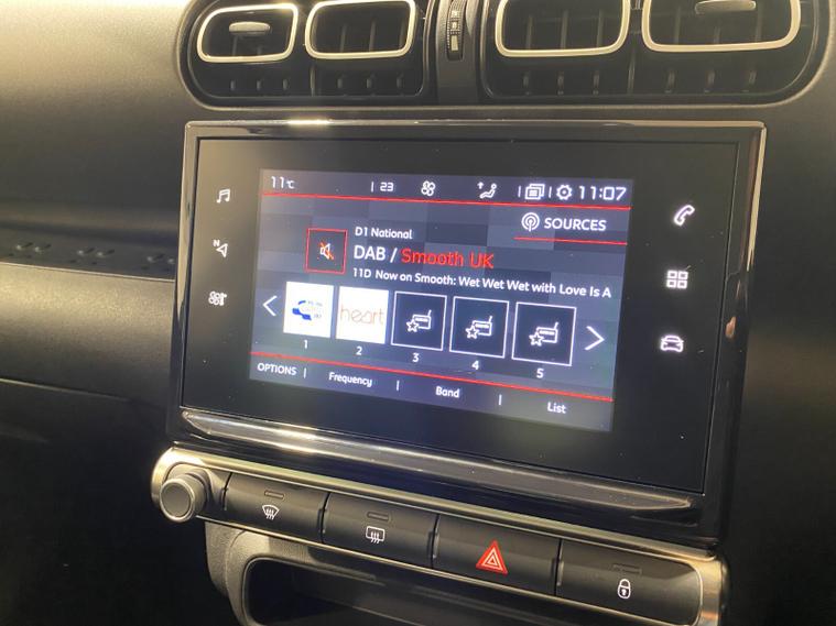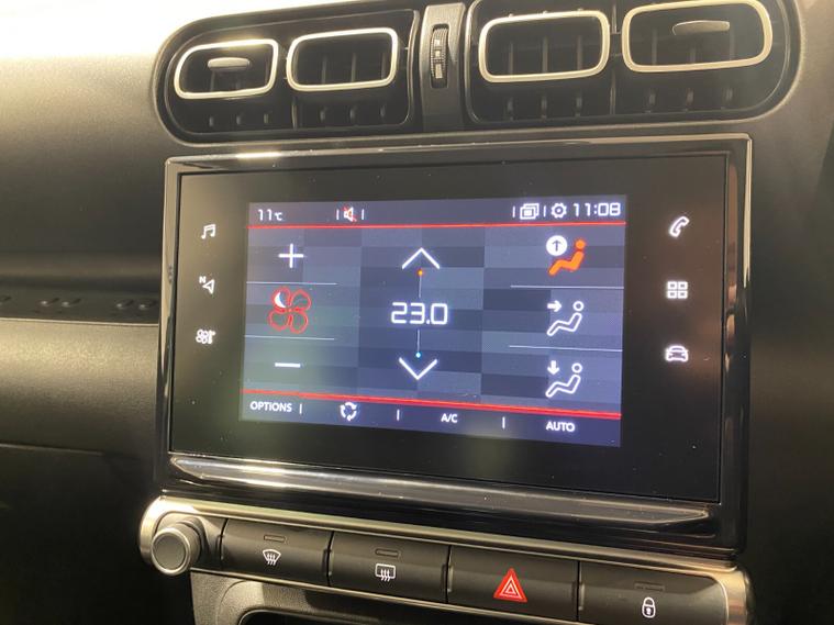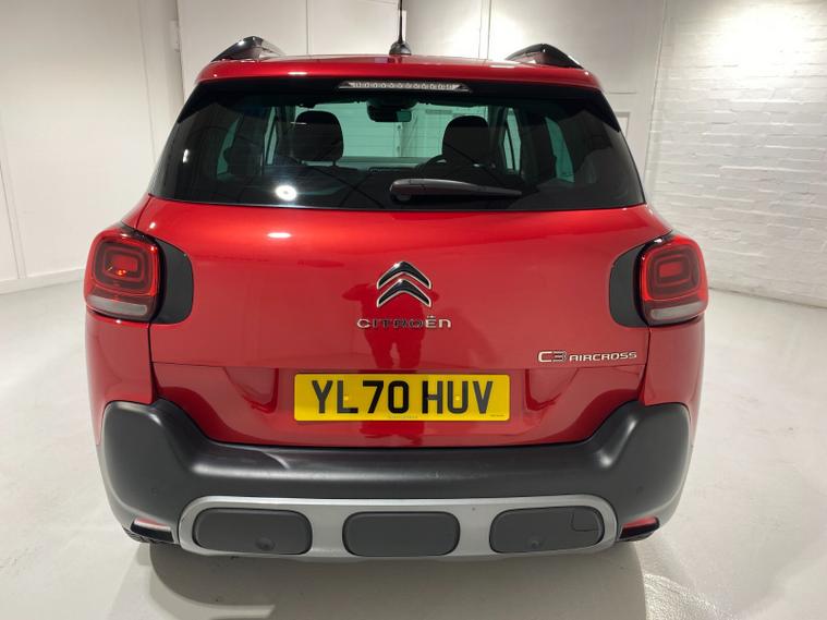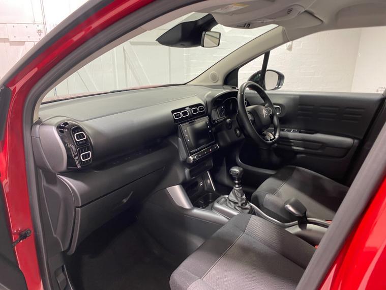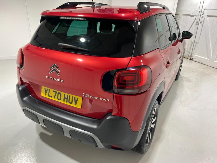 2021 20 Reg Citroen C3 AIRCROSS 1.2 PureTech (110PS) SHINE 6spd Manual 5dr. Passion Red with cloth interior, 17 inch alloy wheels, TOUCHSCREEN, Bluetooth USB, DAB, Apple CarPlay and Android Auto, cruise control, CLIMATE CONTROL AIR CON, auto lights, rain sensing wipers, roof rails, keyless entry and push button start, front and rear electric windows, electrically operated, heated and power folding mirrors, remote central locking, lane keeping aid, REAR parking sensors, LED daytime running lights, 20, 186 miles (YL 70 HUV).