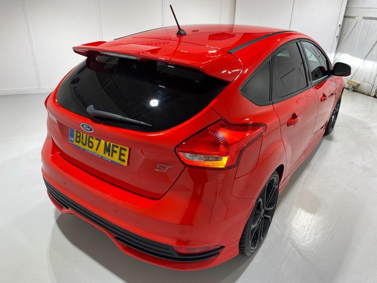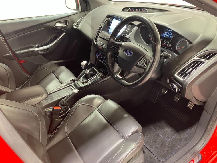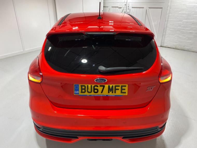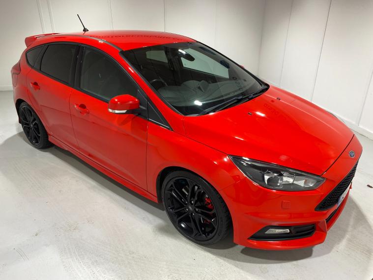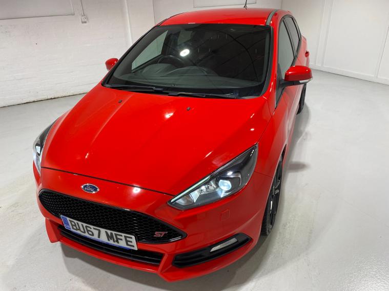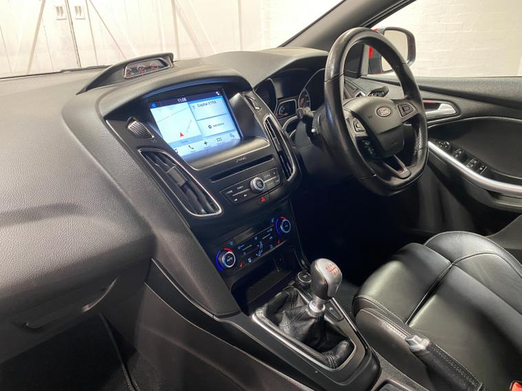2017 67 Reg Focus 2.0 Turbo Ecoboost (250 PS) 6 spd ST3 5dr. Race Red with RECARO FULL LEATHER electric sports seats, HEATED FRONT SEATS, STYLE PACK BLACK with 19 inch Black alloys and PRIVACY GLASS, SYNC3 TOUCHSCREEN NAVIGATION, Apple Car Play, Android Auto, DUAL ZONE ATC AIR CON, DAB, REAR PARKING SENSORS, Bi-XENON headlights, keyless entry, Ford Power start button, cruise control with speed limiter, Ford power start button, power folding and heated door mirrors, auto lights, auto wipers, heated front screen, 78, 730 miles (BU 67 MFE).