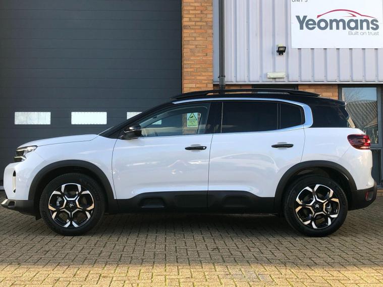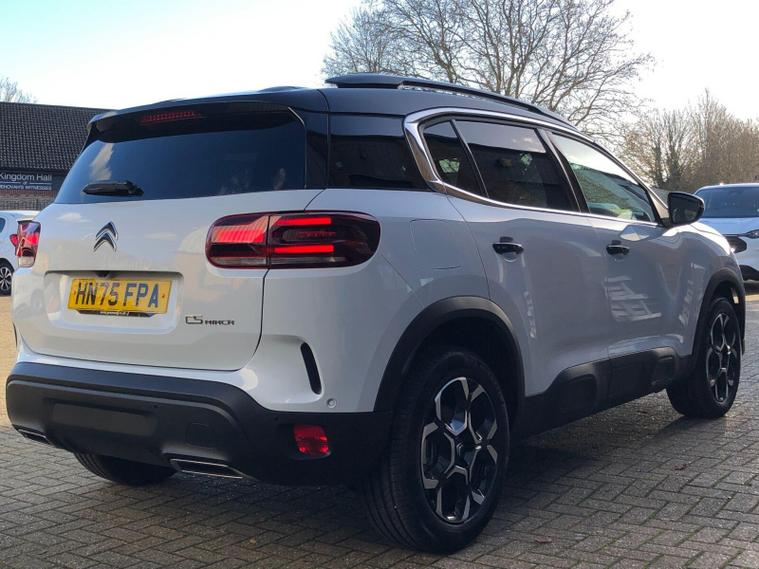 This 2025 Citroen C5 Aircross BlueHDi MAX Edition presents an exceptional opportunity with an incredibly low mileage of just 10 miles, making it virtually new and still Citroen manufacturer approved. This single owner vehicle boasts a 1.5L Euro 6 diesel engine, offering an impressive fuel economy of 54 mpg. Inside, you'll find the My Citroen Play system, seamlessly integrating Android Auto and Apple CarPlay for your connectivity needs. The MAX Edition trim also includes automatic dual zone climate control, automatic headlights with welcome and goodbye lighting, and electric, heated, folding door mirrors complete with LED approach lighting and blind spot monitoring indicators. Furthermore, the acoustic laminated windscreen incorporates rain and brightness sensors for enhanced driving comfort and safety.