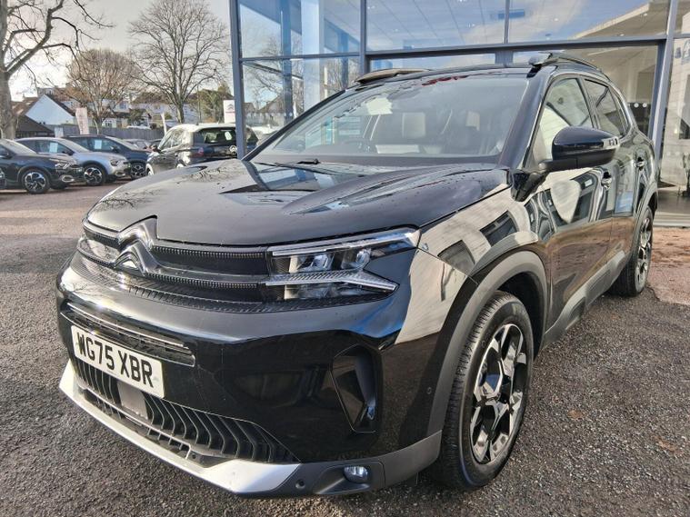 With an incredibly low mileage of just 50 miles, this 2025 Citroen C5 Aircross Hybrid MAX Edition presents an exceptional opportunity to own a virtually new vehicle. As a single owner vehicle, it boasts the advanced 1.2L Petrol Hybrid Engine, meeting Euro 6 emission standards. This MAX Edition trim comes equipped with striking LED Headlights featuring a distinctive LED Daytime Running Light signature, complemented by automatic headlights that offer a welcoming and goodbye illumination. Navigating tight spaces is made effortless with the City Camera Pack, which includes front and rear parking sensors and a rear camera. For enhanced safety and convenience on longer journeys, the Drive Assist Pack with Highway Driver Assist provides Blind Spot Assistance and Adaptive Cruise Control, while the Automatic Dual Zone Climate Control ensures a comfortable cabin environment for all occupants.