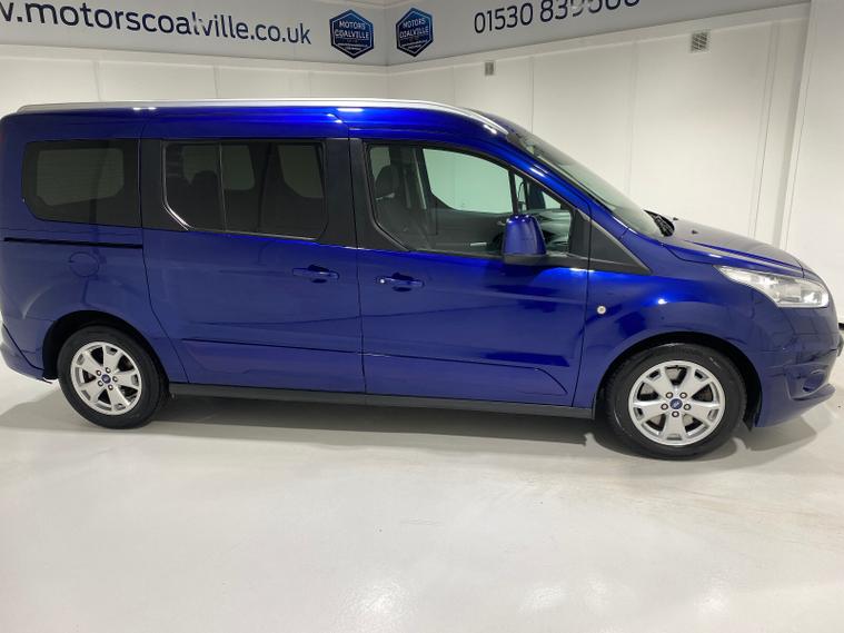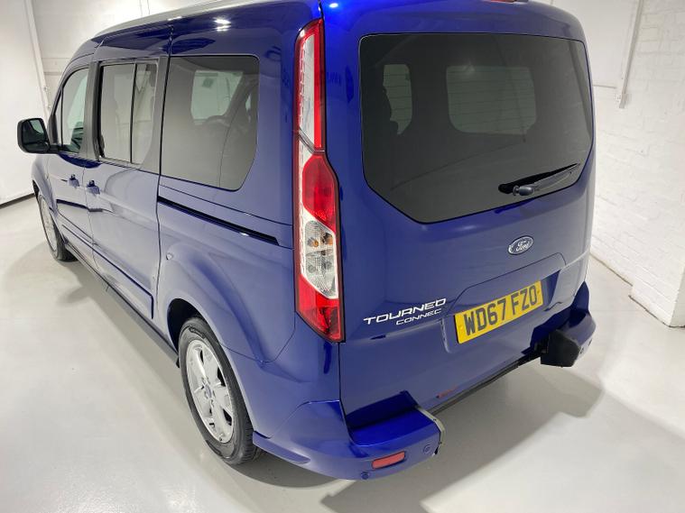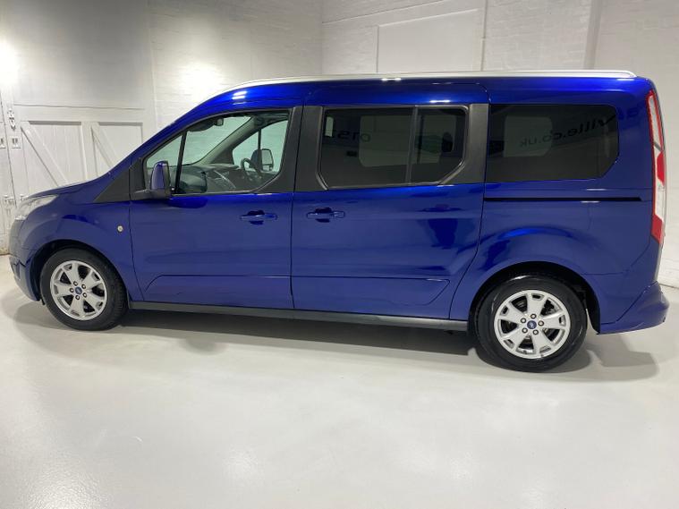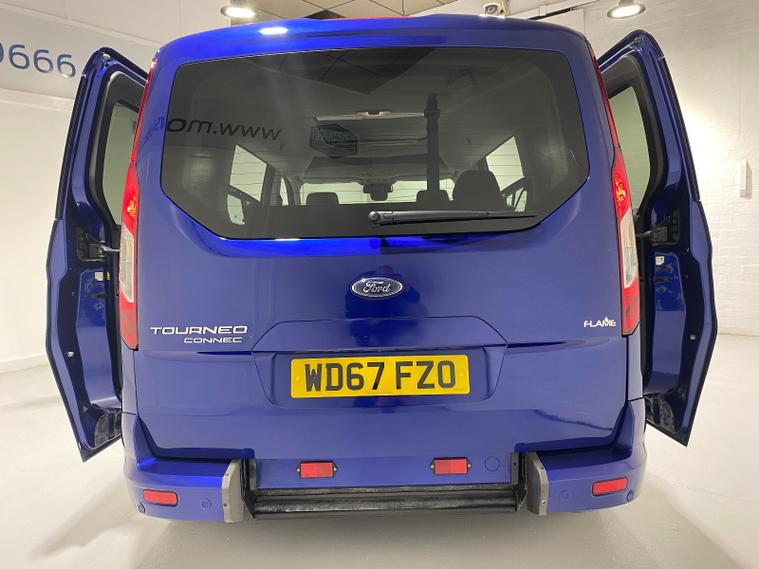 2018 67 Reg Ford Grand Tourneo Connect 1.5 TDCi (120PS) TITANIUM 6spd Manual 5dr.***WHEELCHAIR ACCESSIBLE VEHICLE***3 seater** Deep Impact Blue metallic with black cloth interior, 16 inch alloy wheels, PANORAMIC ROOF, CD, DAB, Bluetooth USB, AIR CONDITIONING, REAR PARKING SENSORS, PRIVACY GLASS, electric front and rear windows, heated front and rear screens, cruise control with speed limiter, roof rails, auto lights, rain sensing wipers, front driver and passenger, active city stop, side and curtain airbags, front fog lights, electrically operated heated and power folding door mirrors, tinted glass, ABS, ESP, 49, 674 miles (WD 67 FZO).