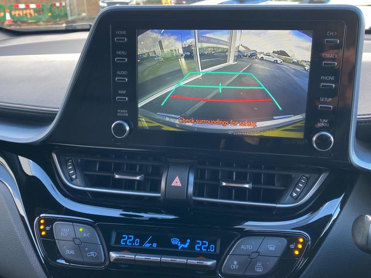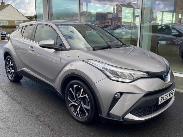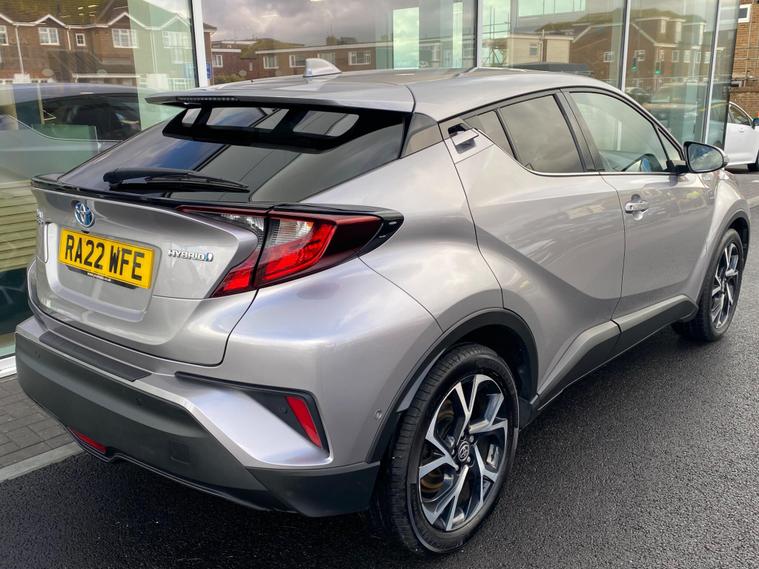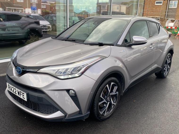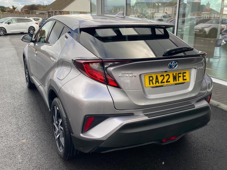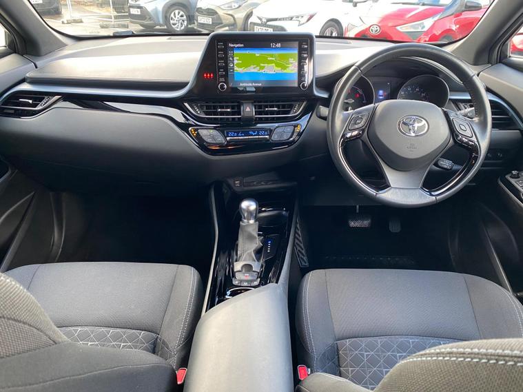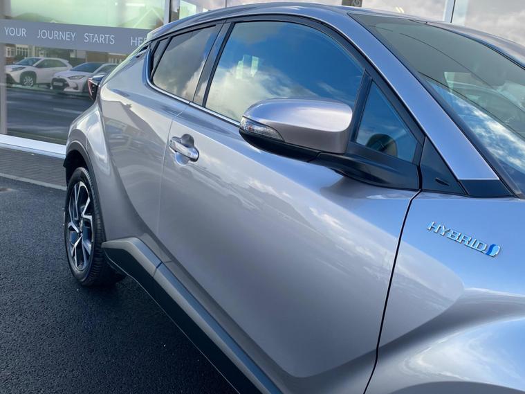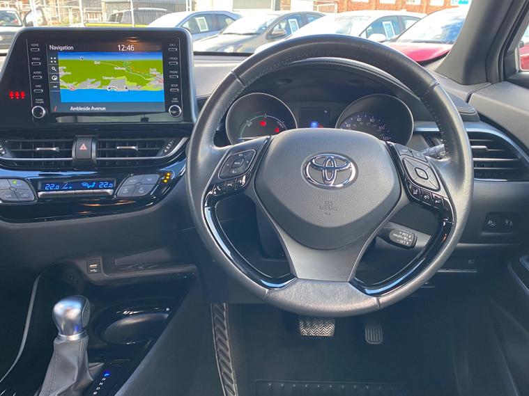 This 2022 Toyota C-HR VVT-h Design is a Toyota manufacturer approved vehicle with a full service history, most recently serviced on 20th October 2025 at 34, 496 miles, offering excellent provenance. This Euro 6 compliant model features a 1.8L petrol hybrid engine and comes equipped with front and rear parking sensors, intelligent clearance sonar with automatic braking, and parking assistance for stress free manoeuvring. Inside, you will appreciate the dual zone automatic air conditioning, and seamless smartphone integration with Apple CarPlay and Android Auto. The Design trim also benefits from LED reflector headlights for clear visibility and smart entry with push button start for convenience.