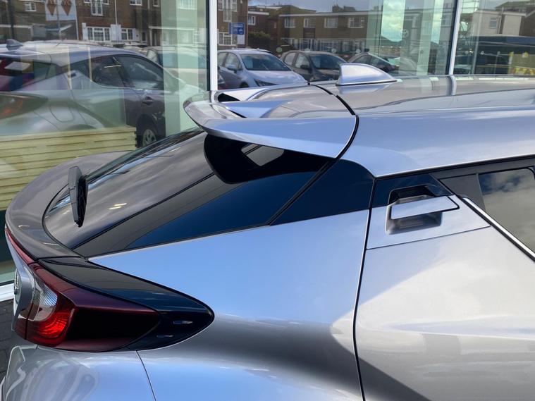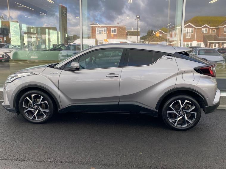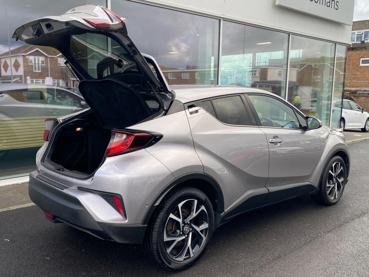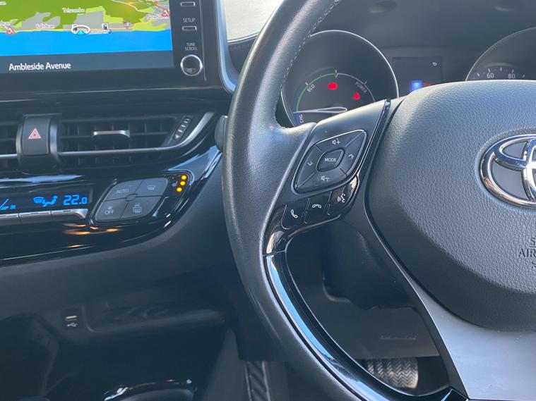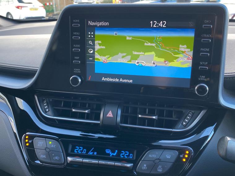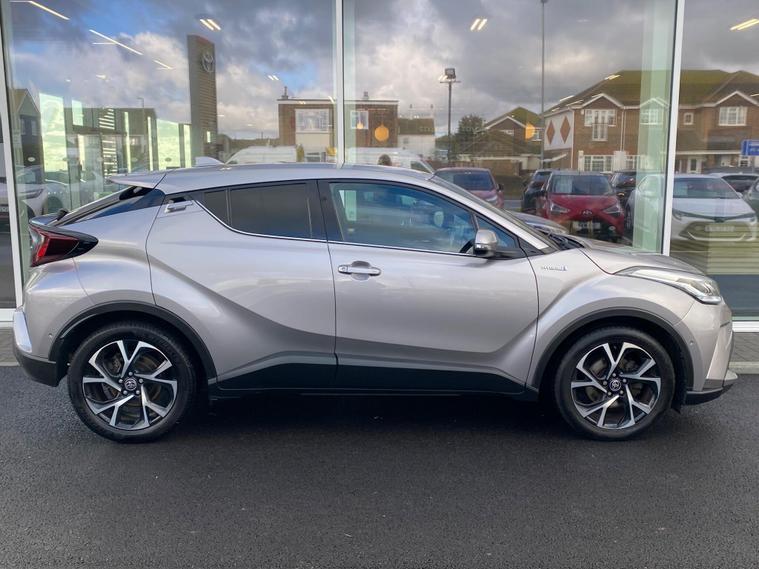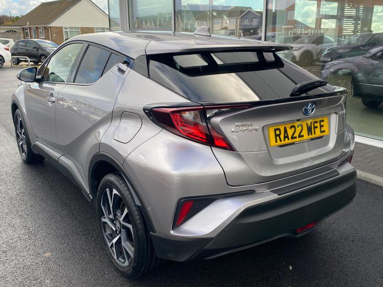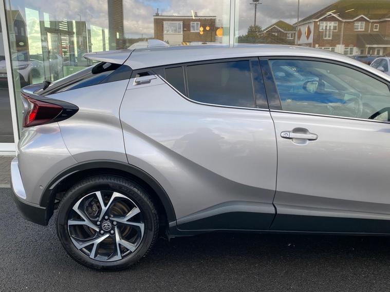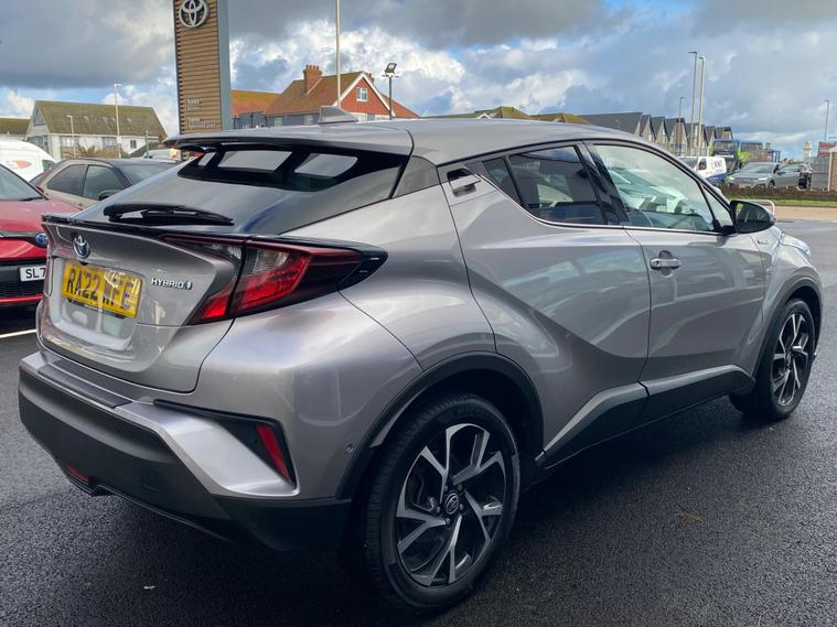 This 2022 Toyota C-HR VVT-h Design is a Toyota manufacturer approved vehicle with a full service history, most recently serviced on 20th October 2025 at 34, 496 miles, offering excellent provenance. This Euro 6 compliant model features a 1.8L petrol hybrid engine and comes equipped with front and rear parking sensors, intelligent clearance sonar with automatic braking, and parking assistance for stress free manoeuvring. Inside, you will appreciate the dual zone automatic air conditioning, and seamless smartphone integration with Apple CarPlay and Android Auto. The Design trim also benefits from LED reflector headlights for clear visibility and smart entry with push button start for convenience.