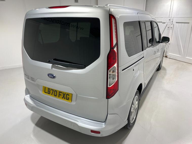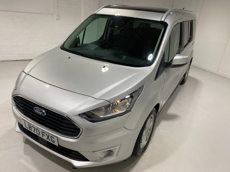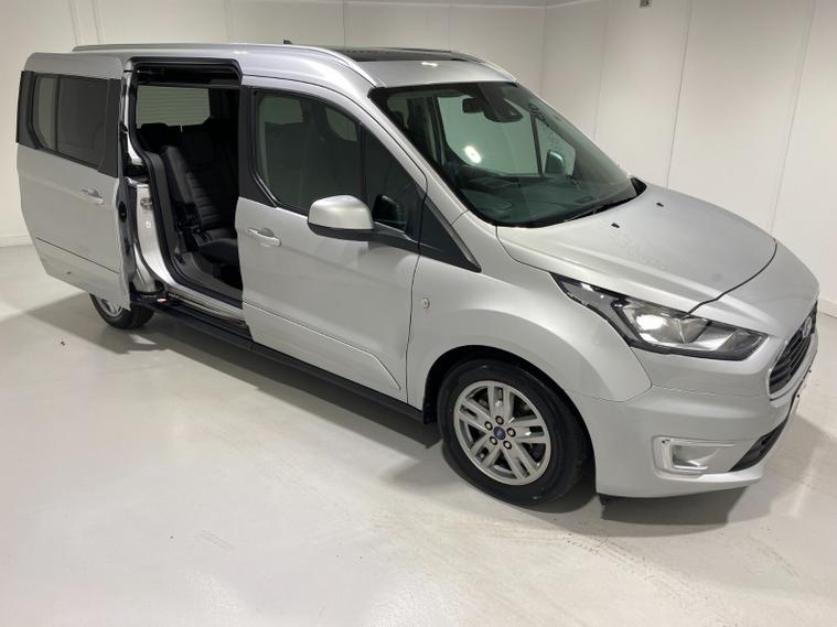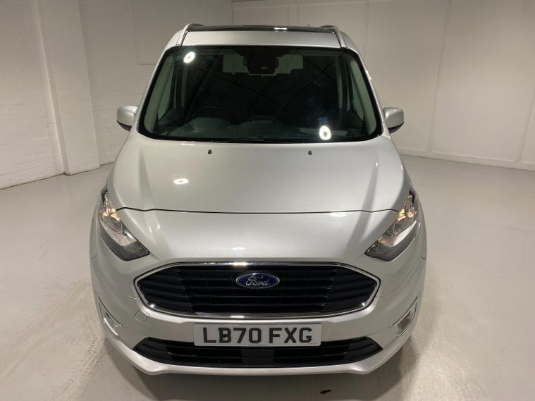 2020 70 Reg Ford Grand Tourneo Connect 1.5 TDCi EcoBlue (120PS) TITANIUM 6spd Manual 5dr**7 seater**. Moondust Silver metallic with black cloth interior, HEATED FRONT SEATS, 16 inch alloy wheels, PANORAMIC GLASS ROOF, CD, DAB, Bluetooth USB, CLIMATE CONTROL, AIR CONDITIONING, REAR PARKING SENSORS, PRIVACY GLASS, electric front and rear windows, heated front and rear screens, cruise control with speed limiter, roof rails, auto lights, rain sensing wipers, front driver and passenger, active city stop, side and curtain airbags, front fog lights, electrically operated heated and power folding door mirrors, tinted glass, ABS, ESP, 46, 705 miles (LB 70 FXG).