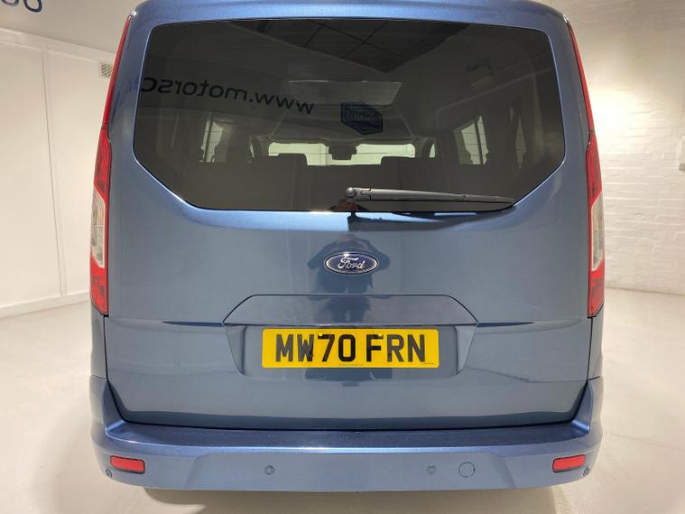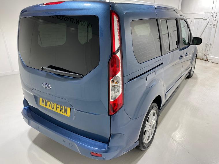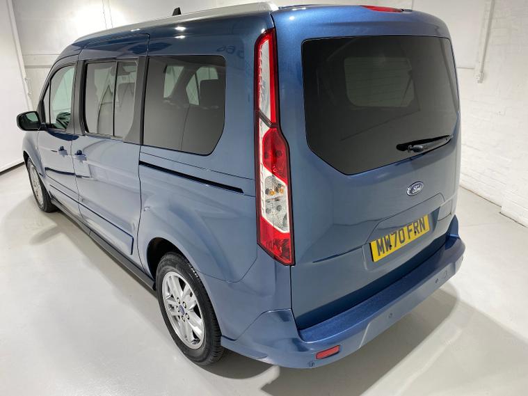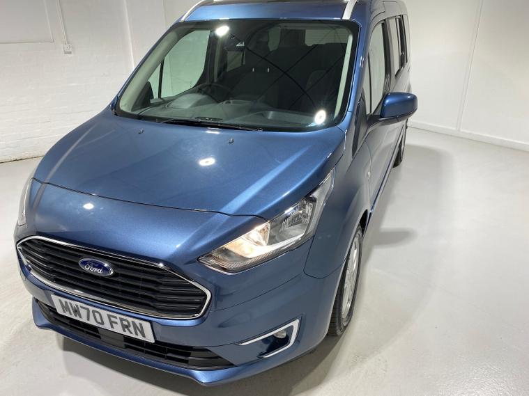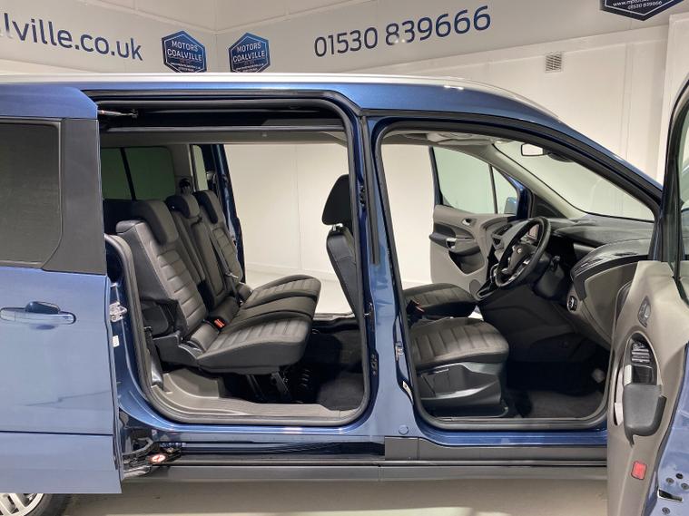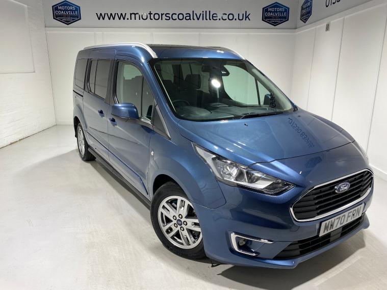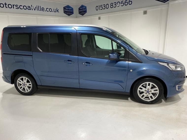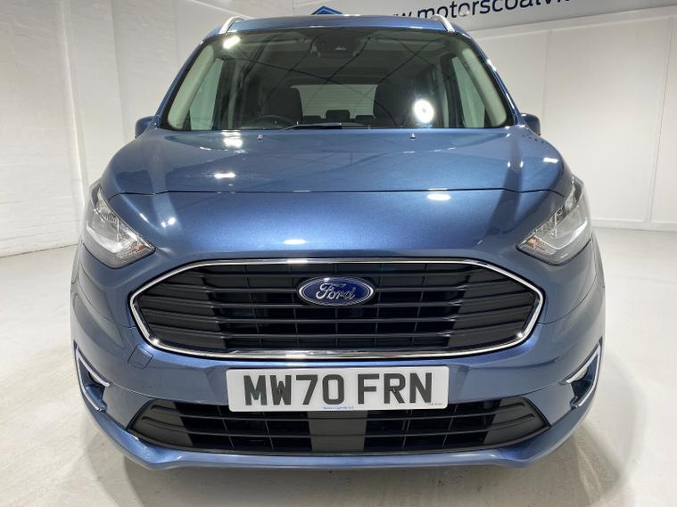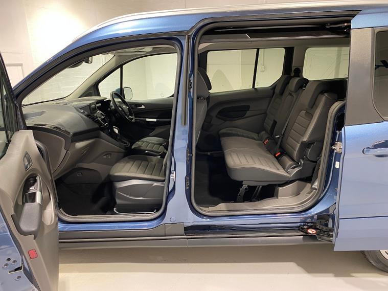 2020 70 Reg Ford Grand Tourneo Connect 1.5 TDCi EcoBlue (120PS) Automtaic TITANIUM 5dr**7 seater**. Chrome Blue metallic with black cloth interior, 16 inch alloy wheels, PANORAMIC GLASS ROOF, CD Player, DAB, HEATED FRONT SEATS, Bluetooth USB, CLIMATE CONTROL, AIR CONDITIONING, REAR PARKING SENSORS, PRIVACY GLASS, electric front and rear windows, heated front and rear screens, cruise control with speed limiter, roof rails, auto lights, rain sensing wipers, front driver and passenger, active city stop, side and curtain airbags, front fog lights, electrically operated heated and power folding door mirrors, tinted glass, ABS, ESP, 7, 794 miles (MW 70 FRN).