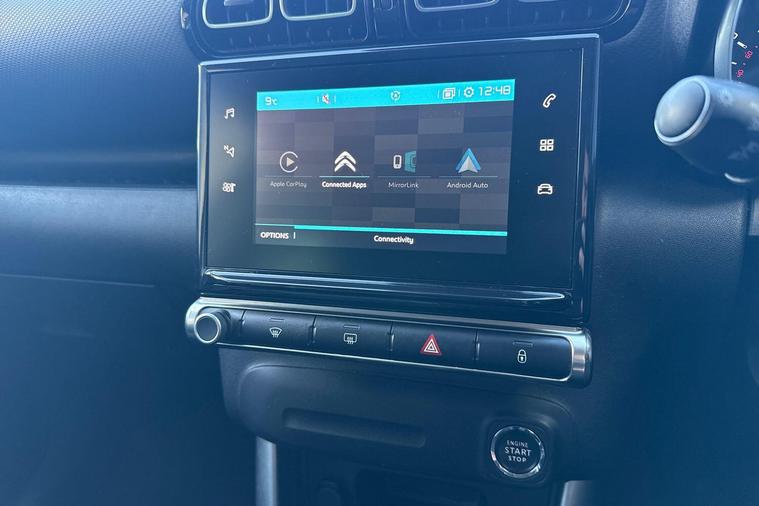 This 2019 Citroen C3 Aircross Flair is a Citroen manufacturer approved vehicle, offering you complete peace of mind with a 12 month warranty and a full service history. This stylish compact SUV is powered by an efficient 1.2L petrol engine, meeting Euro 6 emissions standards. Inside, you'll find a host of convenient features designed to enhance your driving experience, including a Top Rear Vision Reversing Camera with parking assistance, and Mirror Screen technology compatible with both Android Auto and Apple CarPlay. The automatic headlights and automatic air conditioning ensure comfort in all conditions, while keyless entry and start add a touch of modern convenience.