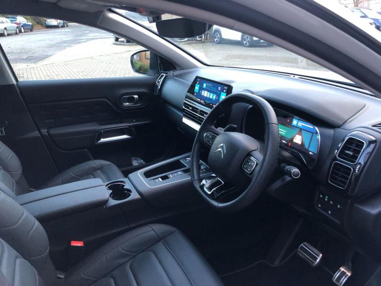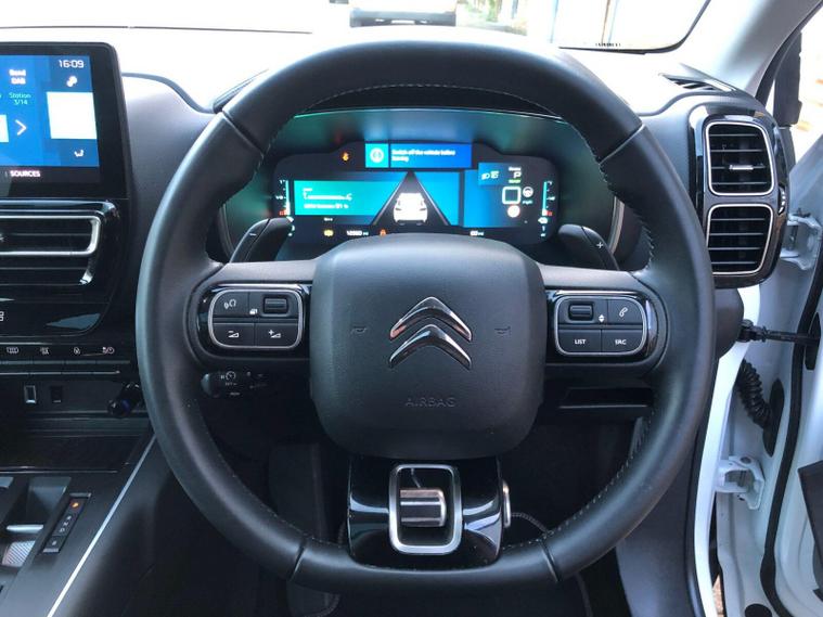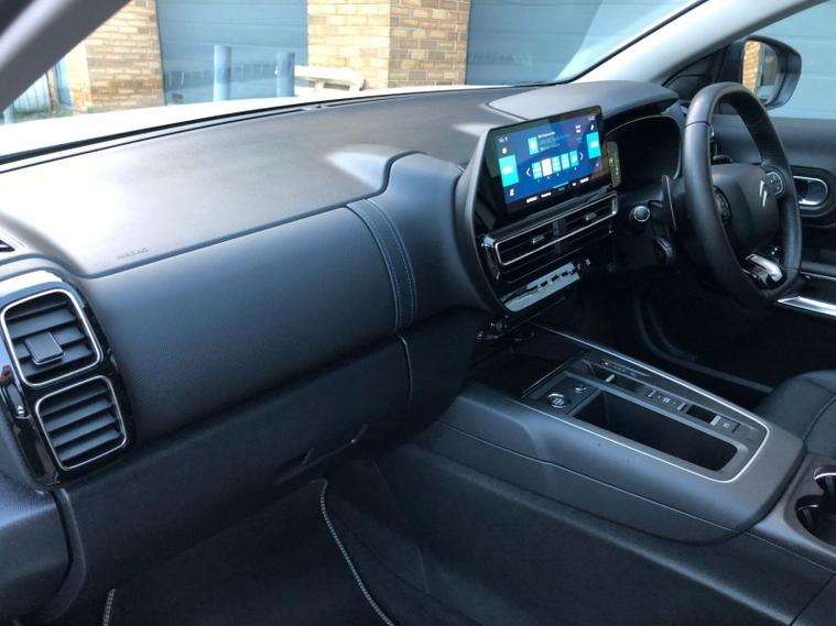 Discover this exceptional 2023 Citroen C5 Aircross C Series Edition, boasting remarkably low mileage for its year at just 12, 362 miles, and having had only one owner. This Euro 6 compliant plug in hybrid model features a 1.6 litre petrol engine, offering an efficient and modern driving experience. Keyless entry and start provide effortless access, while the acoustic laminated windscreen, complete with rain and brightness sensors, ensures a quiet cabin and automatic headlight activation. Enjoy the open air with the opening panoramic roof and its electric sunblind, and maintain perfect comfort with the automatic dual zone climate control. The electric, heated, and folding door mirrors are equipped with LED approach lighting and blind spot monitoring indicators, enhancing both convenience and safety.