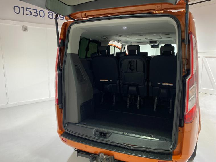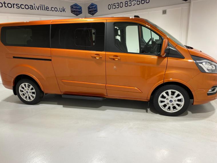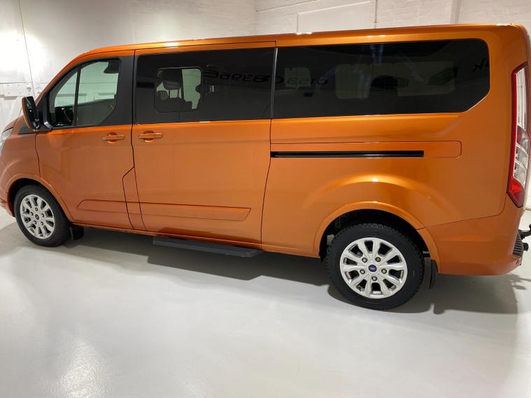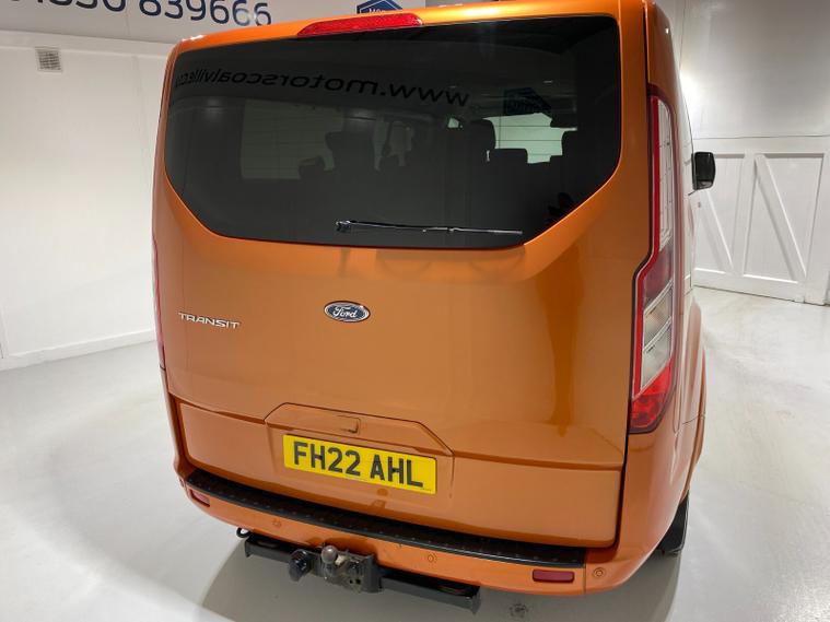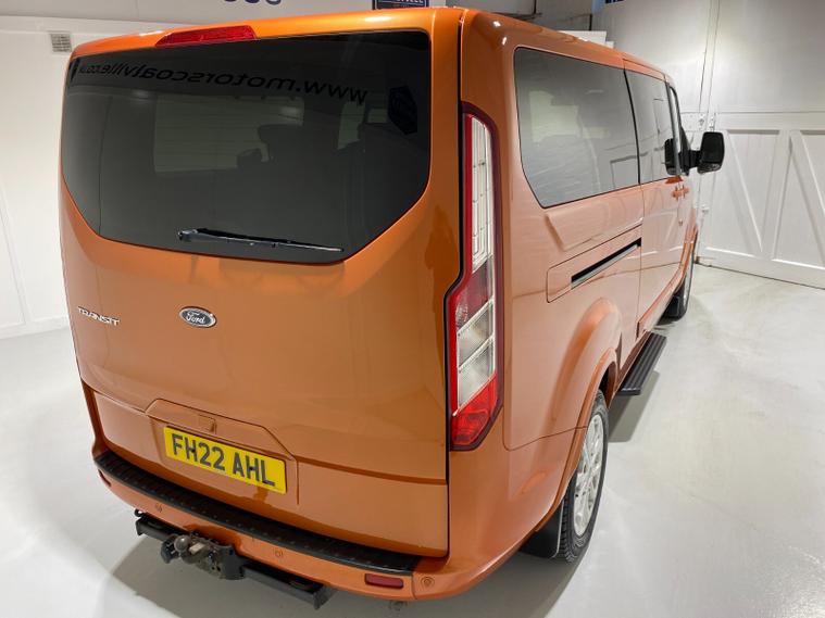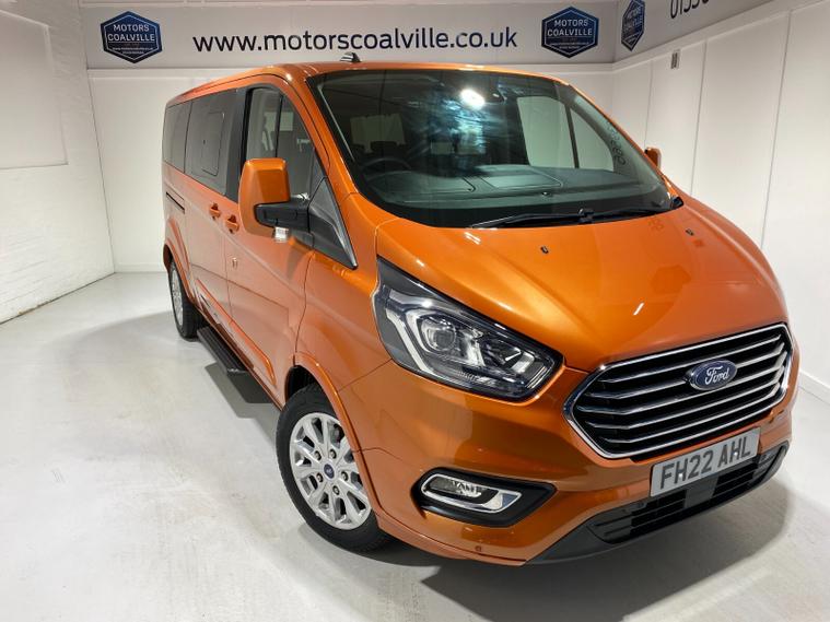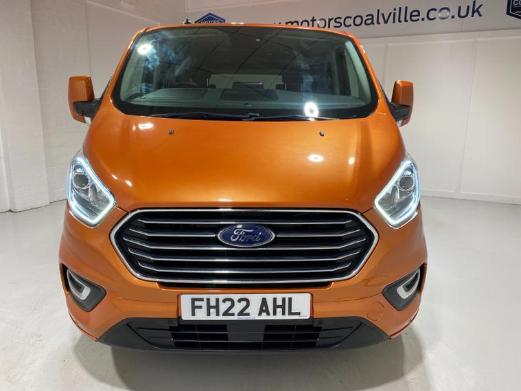 2022 22 Reg Ford Tourneo Custom 320 EcoBlue 2.0 TDCi (130PS) Automatic TITANIUM LWB***8 SEATER***. Orange Glow metallic with charcoal cloth interior, HEATED FRONT SEATS, 17 inch alloy wheels, FRONT and REAR PARKING SENSORS, Ford SYNC 3 TOUCHSCREEN SATELLITE NAVIGATION with Apple CarPlay and Android Auto, Bluetooth USB, DAB, remote central locking, front electric windows, privacy glass, electrically operated, heated and power folding mirrors, auto lights and wipers, LED daytime running lights, front fog lights, quickclear heated front windscreen, 38, 194 miles (FH 22 AHL).