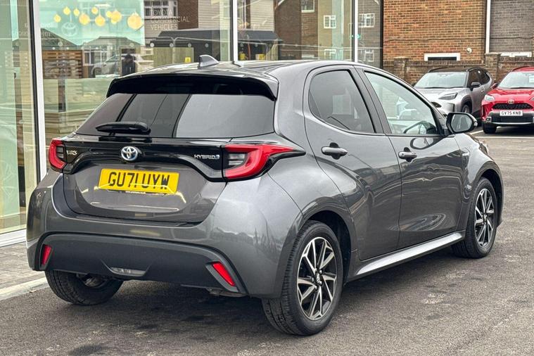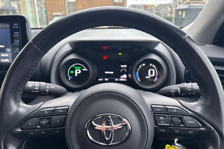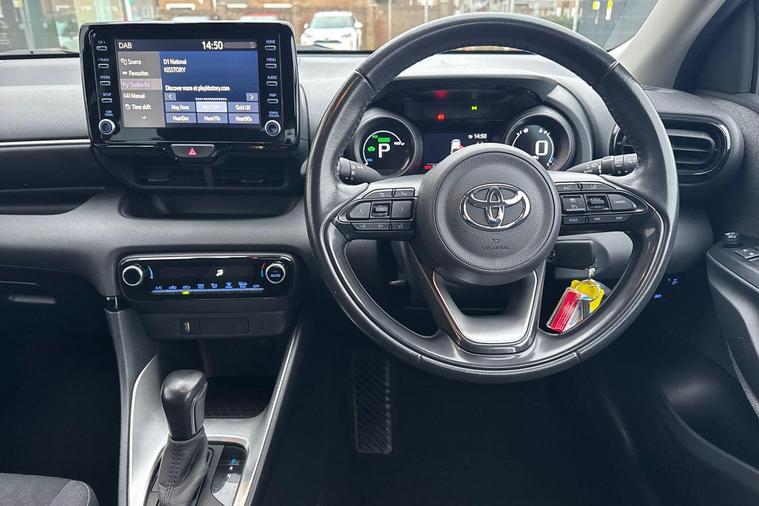 This 2021 Toyota Yaris VVT-h Design is a Toyota manufacturer approved vehicle, offering you complete peace of mind with a 12 month warranty and a full service history. This stylish hatchback is equipped with a responsive 1.5L Petrol Hybrid engine, meeting the Euro 6 emission class. Inside, you'll find a host of convenient features designed to enhance your driving experience, including automatic air conditioning, Bluetooth connectivity, and smartphone integration with Apple CarPlay and Android Auto. The Design trim also boasts striking LED headlights for improved visibility.