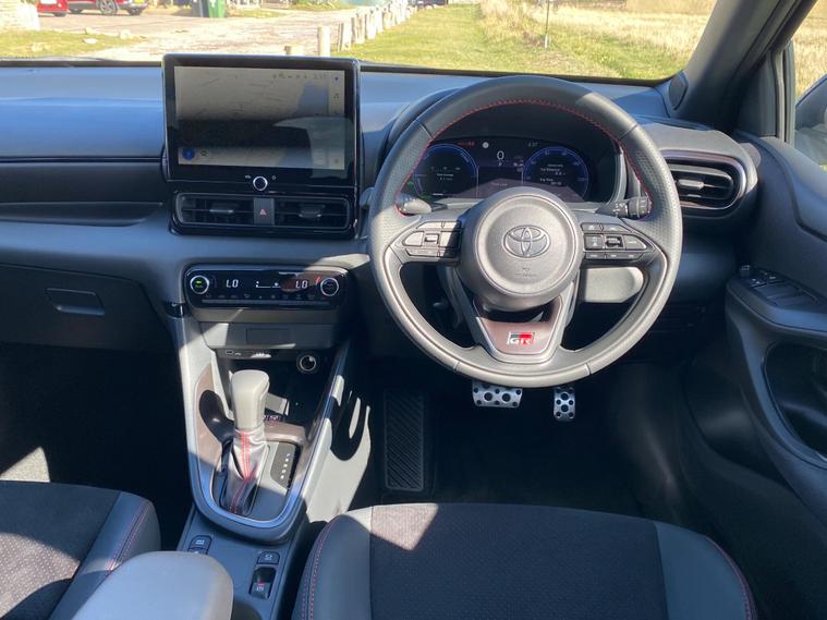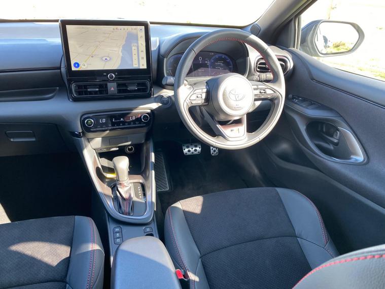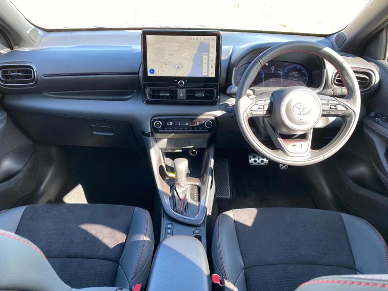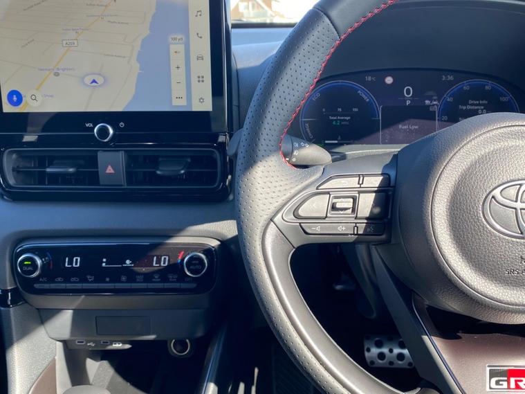 The Yaris GR SPORT is equipped with an Essential Protection Pack for added peace of mind. Inside, you'll find a 10.5in HD Toyota Smart Connect Multimedia System with wireless Apple CarPlay and connected cloud navigation, alongside automatic headlights and a reversing camera for enhanced convenience and safety. The 1.5L petrol hybrid engine delivers impressive performance, achieving 0-62mph in just 9.2 seconds, while its low CO2 emissions highlight its environmental credentials. Furthermore, the ability to remotely control the air conditioning via MyT adds a touch of modern luxury.