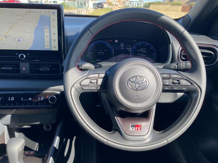 Boasting an exceptional 1000 miles on the clock, this 2025 Toyota Yaris VVT-h GR SPORT represents a superb example of a nearly new vehicle. As a Toyota manufacturer approved model, it comes with the reassurance of a 30 month warranty and a full dealership service history, having had only one owner from new. This Euro 6 compliant hybrid petrol model features the GR SPORT trim, offering a blend of efficiency and sporty design.