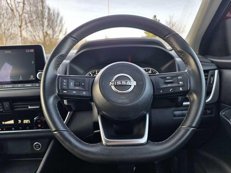 This 2022 Nissan Qashqai DIG-T Acenta Premium is a Nissan manufacturer approved vehicle, offering peace of mind. It features a 1.3L Petrol Hybrid engine and meets Euro 6 emissions standards. The Acenta Premium trim level comes equipped with a suite of advanced driver aids, including a rear view camera for parking assistance, blind spot warning with intelligent intervention, and rear parking sensors. Convenience is enhanced by the Intelligent Key system, which provides keyless entry.