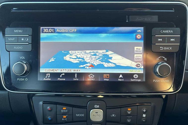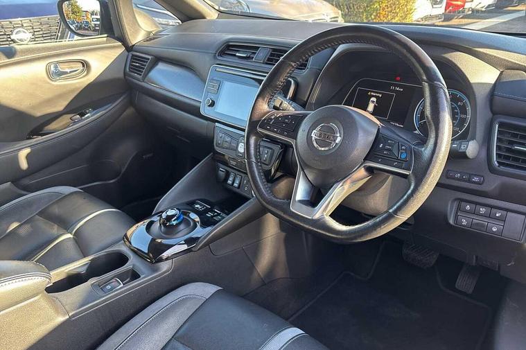 This 2019 Nissan Leaf Tekna presents an exceptional example with remarkably low mileage for its age, having covered just 25, 639 miles. As a fully electric vehicle, it boasts a 40 kWh battery offering a maximum range of 168 miles when new. This Nissan is manufacturer approved, providing added peace of mind. For convenience, a full charge at home using a 7kW charger takes approximately 7 hours and 30 minutes, while rapid public charging can replenish the battery from empty to 80% in just 1 hour and 20 minutes. Notable features include a rear view camera with parking assistance, making manoeuvring easier.