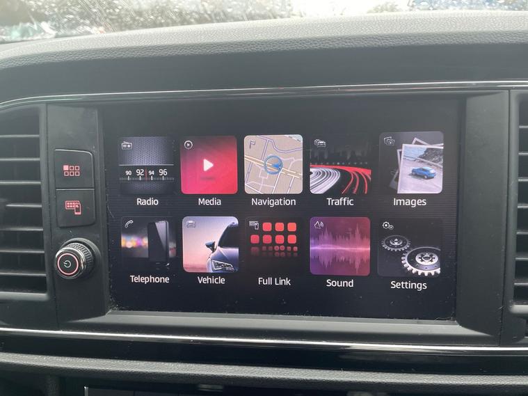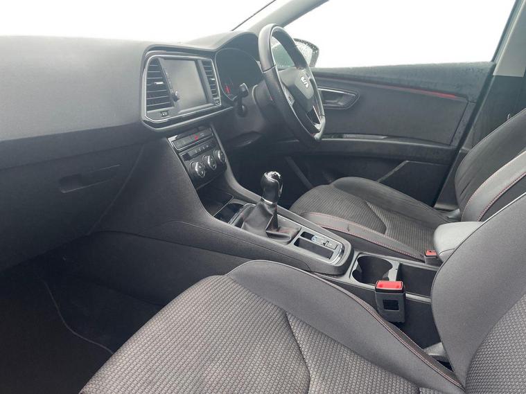- Steering Wheel - Flat-Bottomed Perforated Leather with Red Stitching and FR Logo