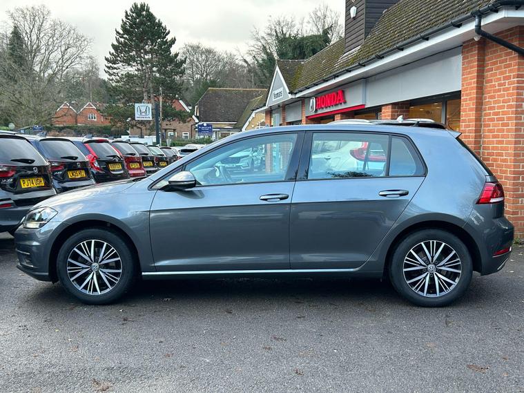 This 2018 Volkswagen Golf TSI SE Nav has been cherished by just one owner since new. As a Euro 6 compliant model, it features a responsive 1.4 litre petrol engine and comes equipped with the desirable SE Nav trim. You'll appreciate the convenience of the Convenience Pack, which includes automatic headlights, and the ease of parking with front and rear parking sensors. The integrated Car Net App Connect system seamlessly connects your smartphone via Android Auto or Apple CarPlay, while Adaptive Cruise Control takes the strain out of longer journeys.