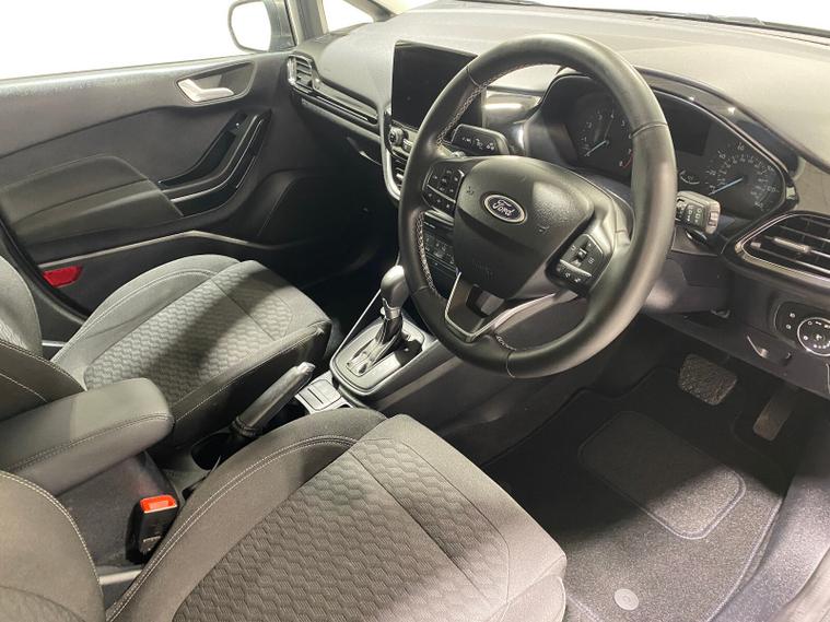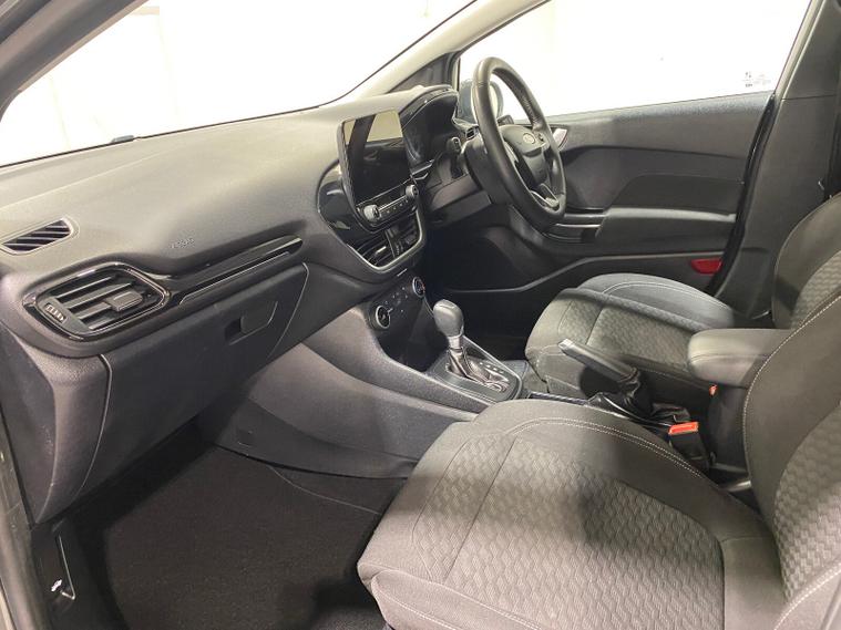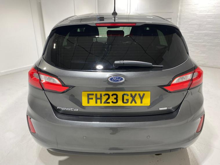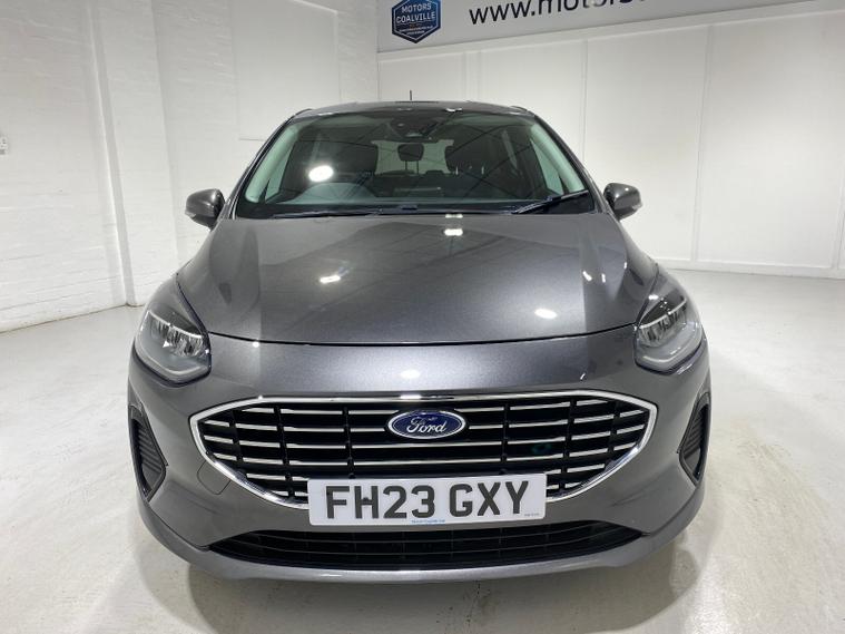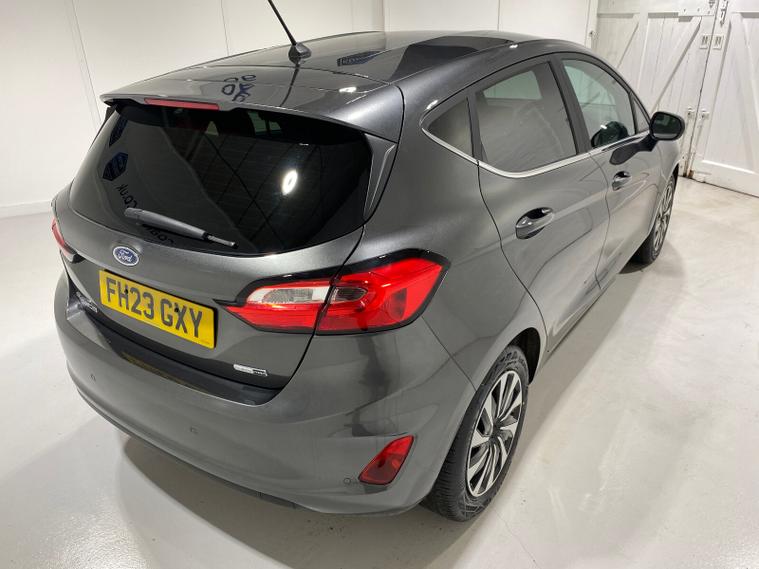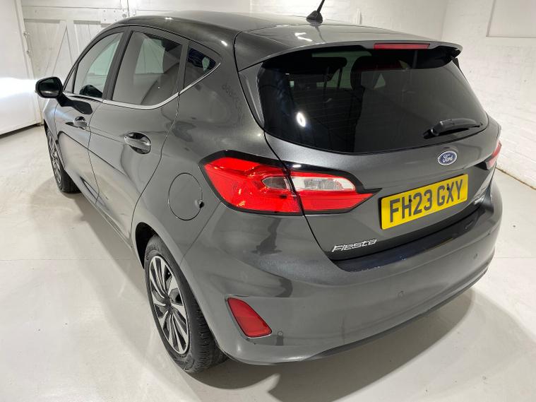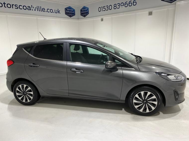 2023 23 Reg Fiesta 1.0 Turbo EcoBoost mHEV (125PS) TITANIUM AUTOMATIC 5dr. Magnetic Grey metallic with ebony cloth interior, 16 inch design wheels, SYNC 3 TOUCHSCREEN, DAB, REAR PARKING SENSORS, AIR CONDITIONING, LED night signature rear lights, PRIVACY GLASS, KEYLESS start with FORD power start button, cruise control, auto light and rain sensing wipers, centre console with arm rest, traffic sign recognition, tyre pressure monitoring system, Thatcham alarm, NCAP Pack (lane-keeping alert & lane-keeping aid, speed limiter, rear seat belt minder, rear centre head restraint & auto-headlamps), front fog lamps with cornering lights, heated front screen, remote central locking, electric front windows, ESP, Hill start assist, trip computer, ambient lighting, 14, 533 miles (FH 23 GXY).