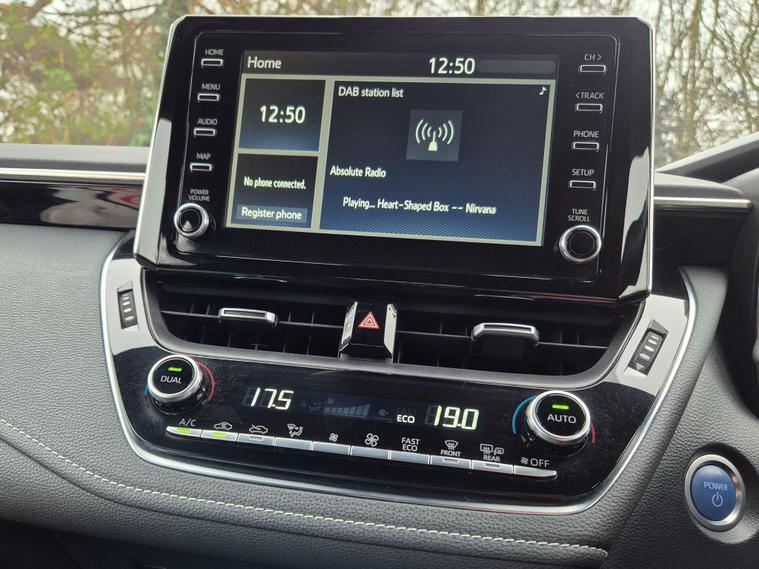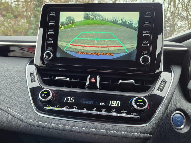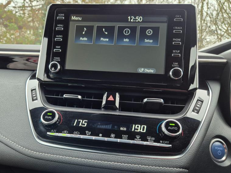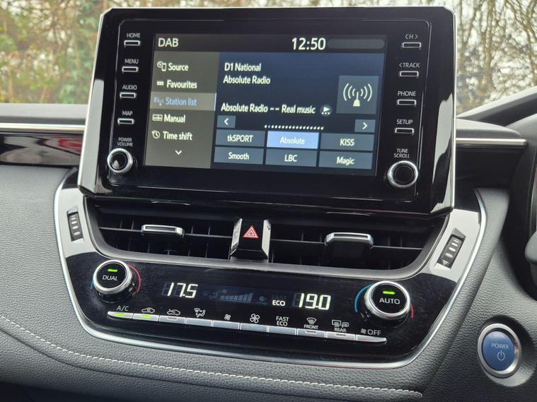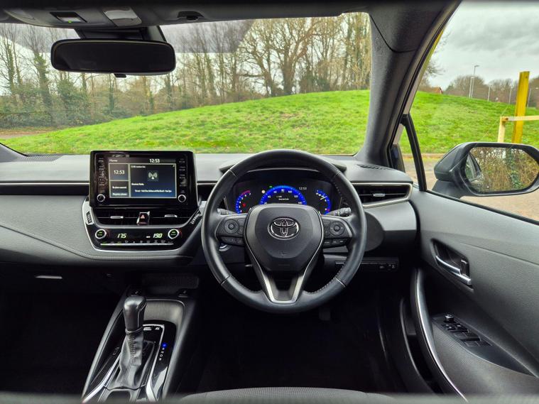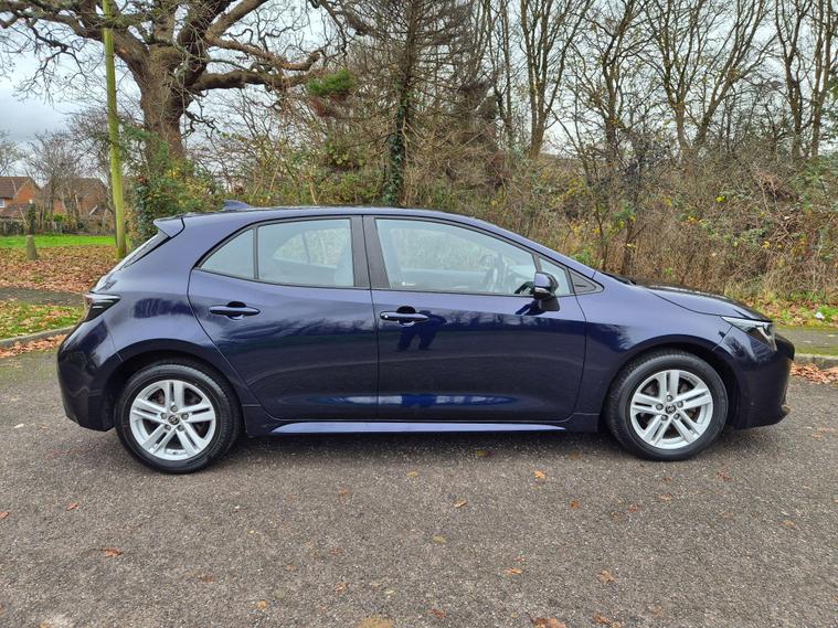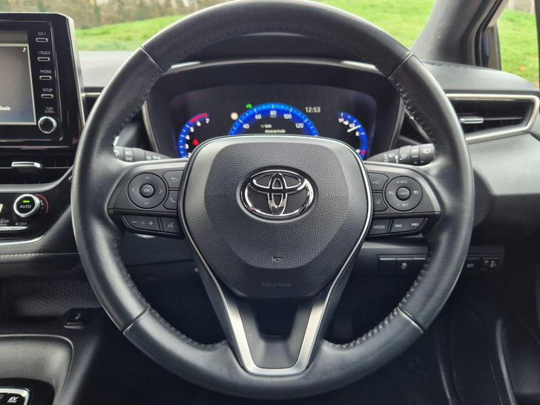 This 2022 Toyota Corolla VVT-h Icon is a Toyota manufacturer approved vehicle, boasting a full service history and having had only one owner. It features a 1.8L Petrol Hybrid engine, meeting Euro 6 emission standards. Notable features include automatic headlights, a smart entry system with keyless entry, and Toyota Safety Sense which incorporates adaptive cruise control with a speed limiter. Inside, you'll find dual-zone automatic air conditioning for your comfort. A 12-month warranty provides added peace of mind.