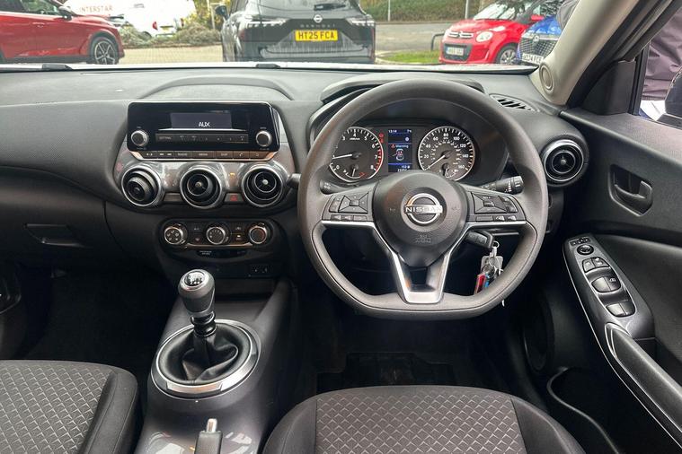 The Juke DIG-T Visia stands out with its efficient 1.0 litre petrol engine, providing a responsive driving experience. Its Euro 6 compliance highlights its modern and environmentally conscious design. The inclusion of manual air conditioning as standard on the Visia trim further enhances its appeal, offering a practical and comfortable journey.