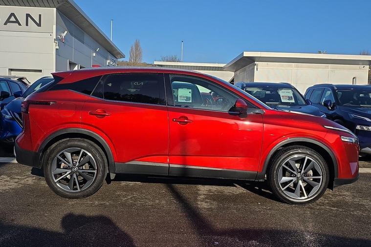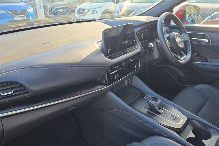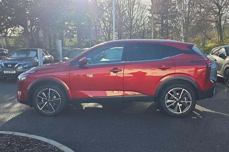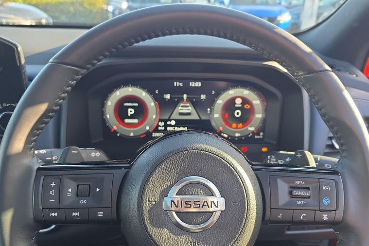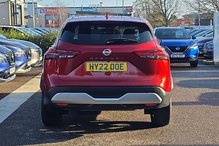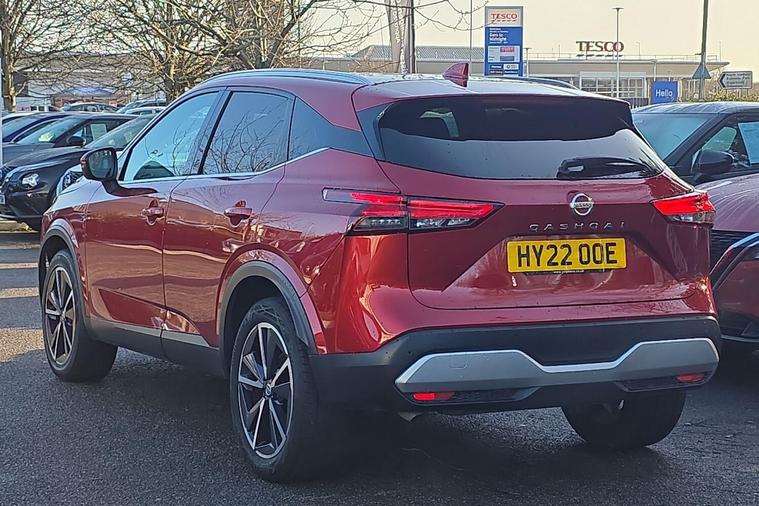 This 2022 Nissan Qashqai DIG-T Tekna is a superb example, having been owned by just one person and boasting exceptionally low mileage for its age at only 22, 068 miles. This Euro 6 compliant 1.3L Petrol Hybrid model comes with Nissan manufacturer approval, offering peace of mind. It is equipped with an Intelligent Around View Monitor featuring a 360 degree camera and parking assistance, a dusk sensor that automatically turns on the headlights, and Blind Spot Warning with Intelligent Blind Spot Intervention. Furthermore, front and rear parking sensors are included for added convenience.