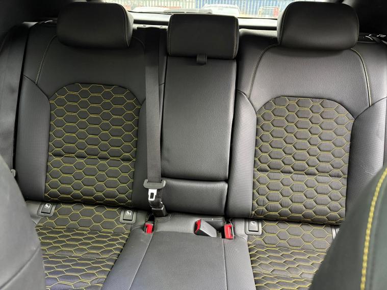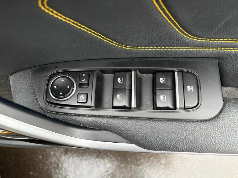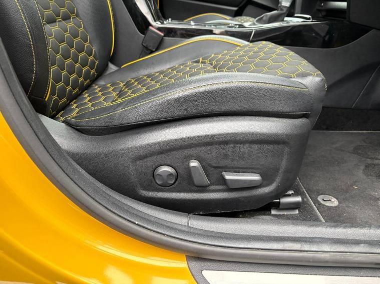 - Faux leather door trim with yellow stitching