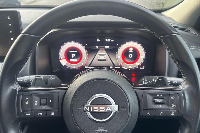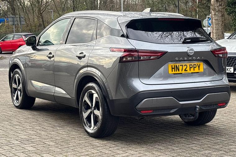This 2022 Nissan Qashqai DIG T N Connecta is a Nissan manufacturer approved vehicle with only one owner from new. It features a 1.3L Petrol Hybrid engine and meets Euro 6 emission standards. This N Connecta trim level comes equipped with a rear view camera for parking assistance, wireless Apple CarPlay, and an intelligent Around View Monitor offering a 360 degree camera view. Safety is enhanced with Blind Spot Warning and rear parking sensors, making manoeuvring simpler and safer.
