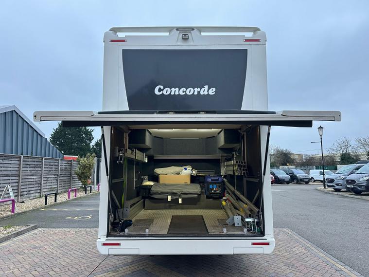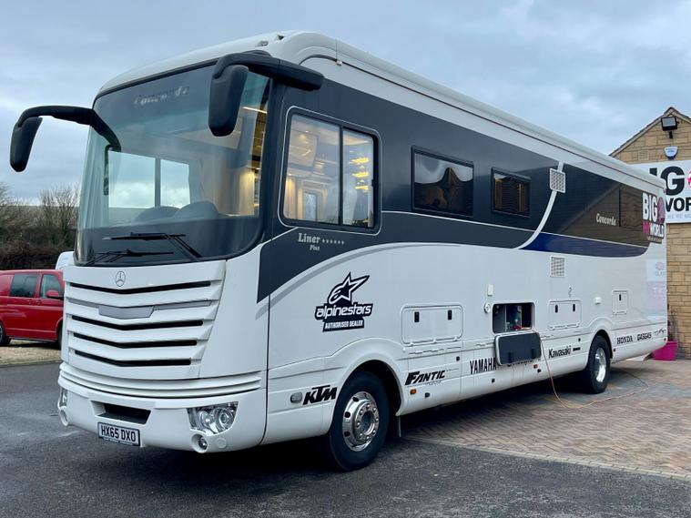 BigVanWorld is delighted to offer this incredibly rare 2015 Mercedes-Benz Concorde Liner Plus 1130 G Max Motorhome, finished in white. This exceptional flag ship Concorde model can only be described as ultimate luxury with numerous factory features selected on build. The layout offered on this A-Class Liner model is the Super King island bed over the car garage (suitable for the Fiat 500 or equivalent), spacious washroom with separate shower, with double dinette opposite spacious kitchen moving forward to the Bar version lounge option and wrap around cupboards over the cab area. this model benefits from being 4 berth with 4 travel belts.
