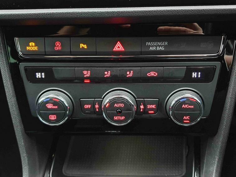 - Flat bottomed perforated leather steering wheel with red stitching and FR logo