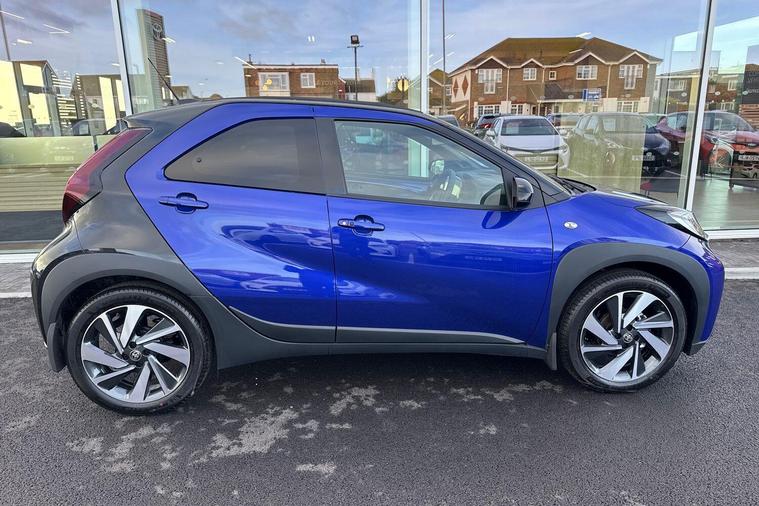 This 2025 Toyota Aygo X VVT-i Exclusive is a truly exceptional find, boasting a full dealership service history and Toyota manufacturer approval, all with just one owner and a mere 1000 miles on the clock. This stylish city car is powered by an efficient 1.0L Euro 6 petrol engine, offering an impressive fuel economy of 57 mpg. The Exclusive trim level comes equipped with a host of desirable features, including Bluetooth connectivity for seamless calls and music streaming, a wireless mobile phone charger, and a reversing camera complemented by front and rear parking sensors to make manoeuvring effortless. Furthermore, Toyota Safety Sense is included, providing adaptive cruise control for a more relaxed driving experience.