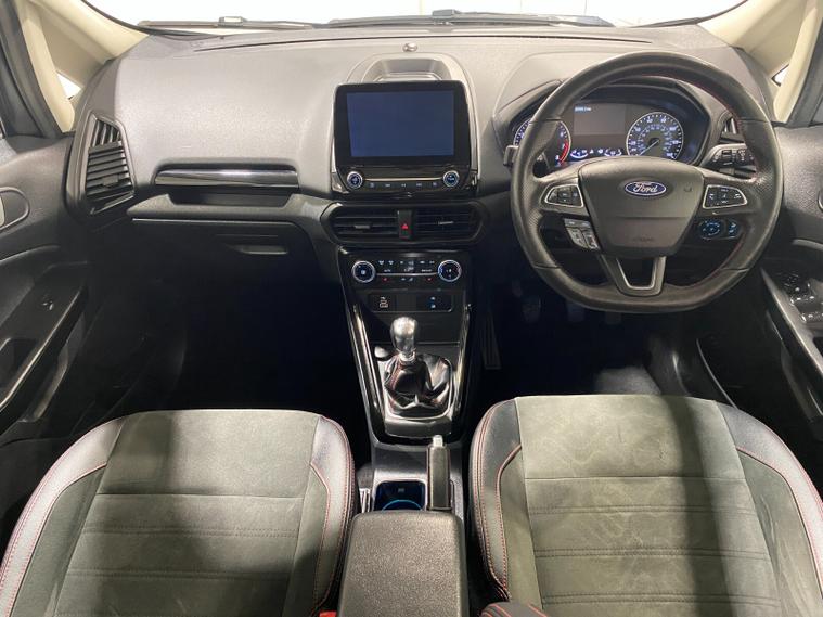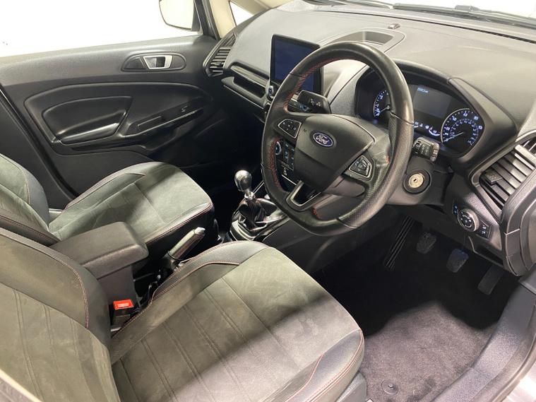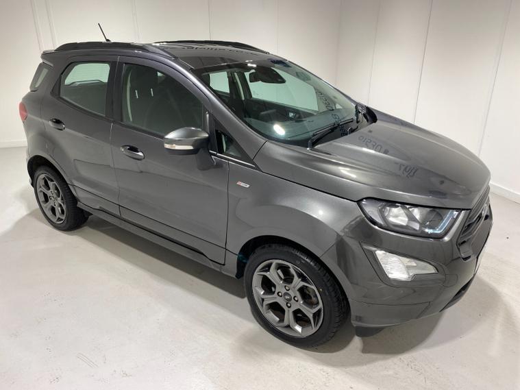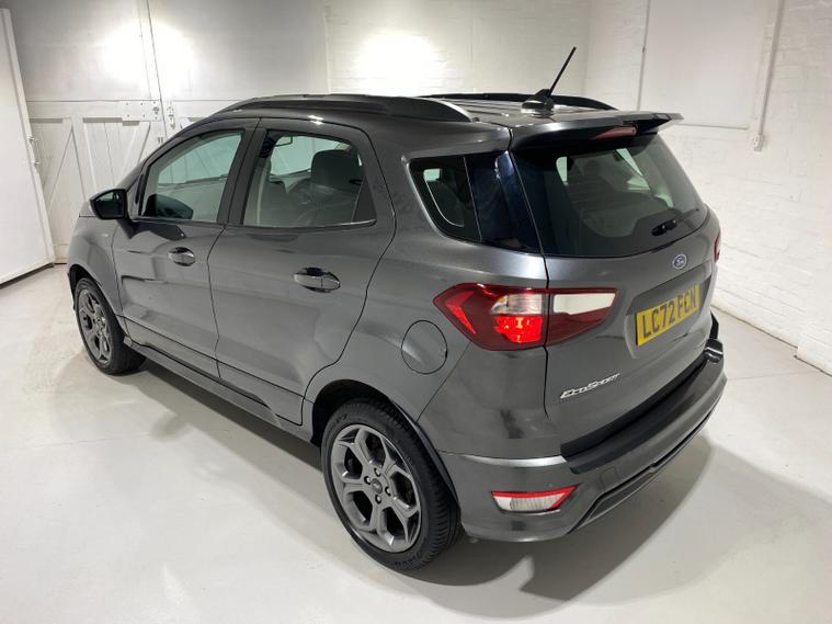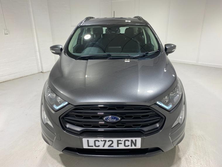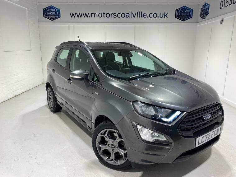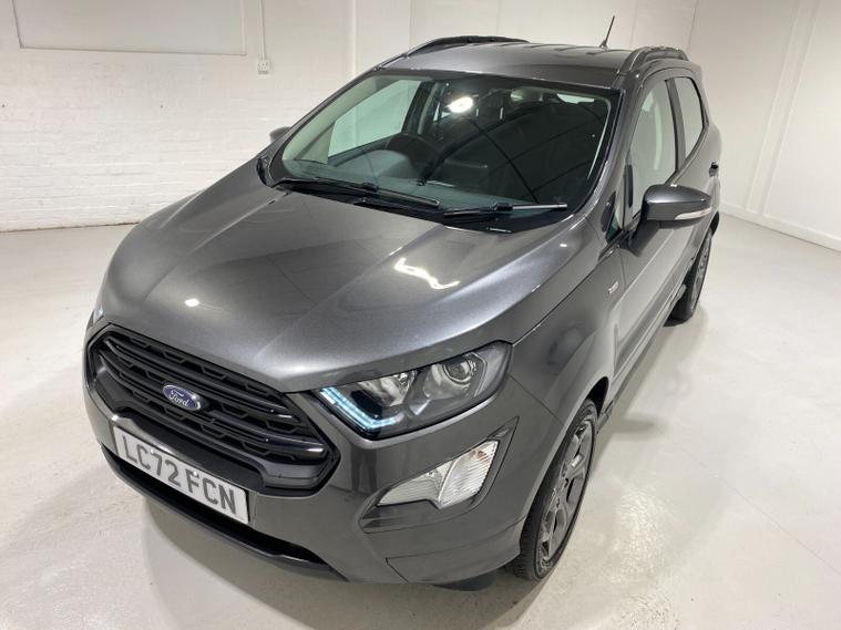 2022 72 Reg EcoSport 1.0 Turbo Ecoboost (125PS) 6 spd ST-LINE 5dr**WINTER PACK**. Magnetic Grey metallic with Ebony part LEATHER interior, WINTER PACK with HEATED FRONT SEATS and HEATED STEERING WHEEL, SYNC 3 DAB SATELLITE NAVIGATION with 8 inch touch screen with REAR VIEW CAMERA, REAR PARKING SENSORS, Bluetooth USB, Apple CarPlay, Android Auto, 17” alloys, tyre pressure monitoring system, Thatcham alarm, front fog lamps with cornering lights, heated front screen, remote central locking, electric front windows, ESP, Hill start assist, trip computer, ambient lighting, 25, 505 miles (LC 72 FCN).