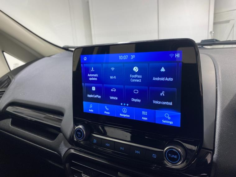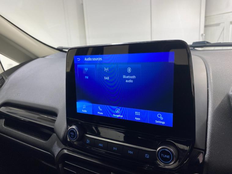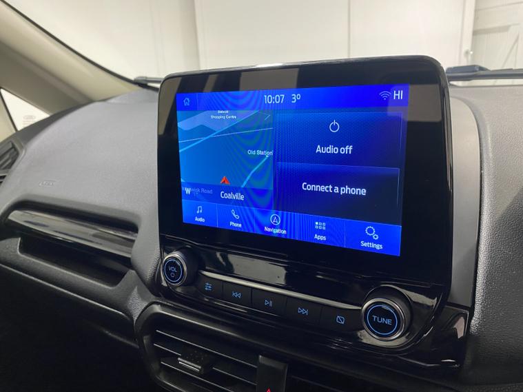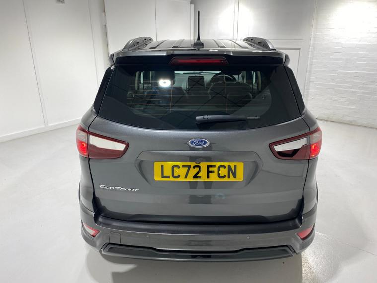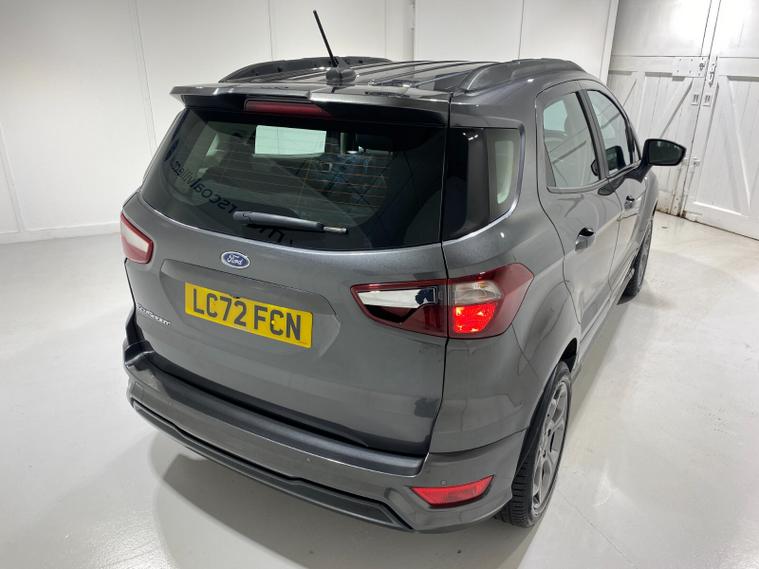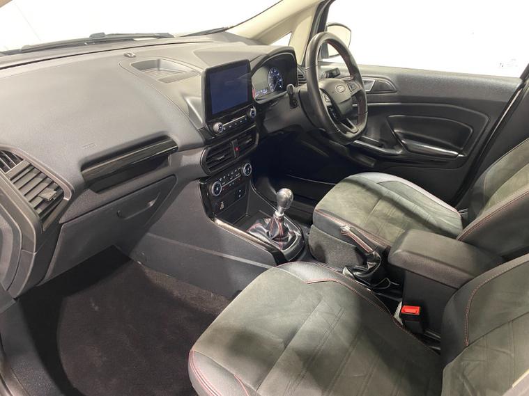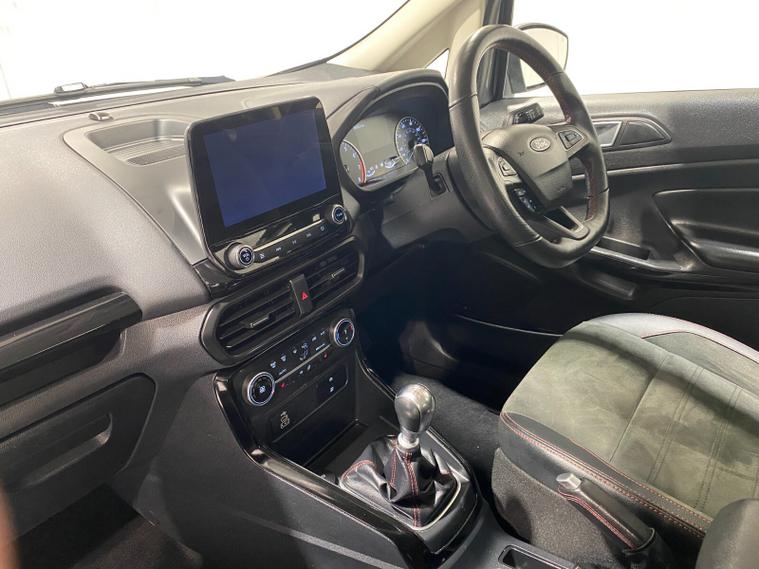2022 72 Reg EcoSport 1.0 Turbo Ecoboost (125PS) 6 spd ST-LINE 5dr**WINTER PACK**. Magnetic Grey metallic with Ebony part LEATHER interior, WINTER PACK with HEATED FRONT SEATS and HEATED STEERING WHEEL, SYNC 3 DAB SATELLITE NAVIGATION with 8 inch touch screen with REAR VIEW CAMERA, REAR PARKING SENSORS, Bluetooth USB, Apple CarPlay, Android Auto, 17” alloys, tyre pressure monitoring system, Thatcham alarm, front fog lamps with cornering lights, heated front screen, remote central locking, electric front windows, ESP, Hill start assist, trip computer, ambient lighting, 25, 505 miles (LC 72 FCN).