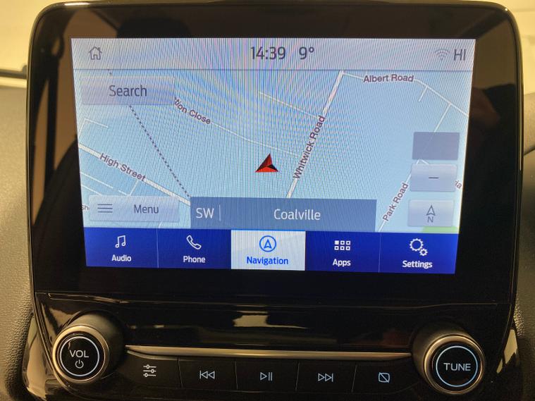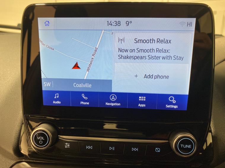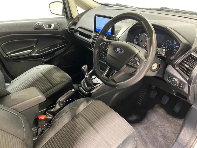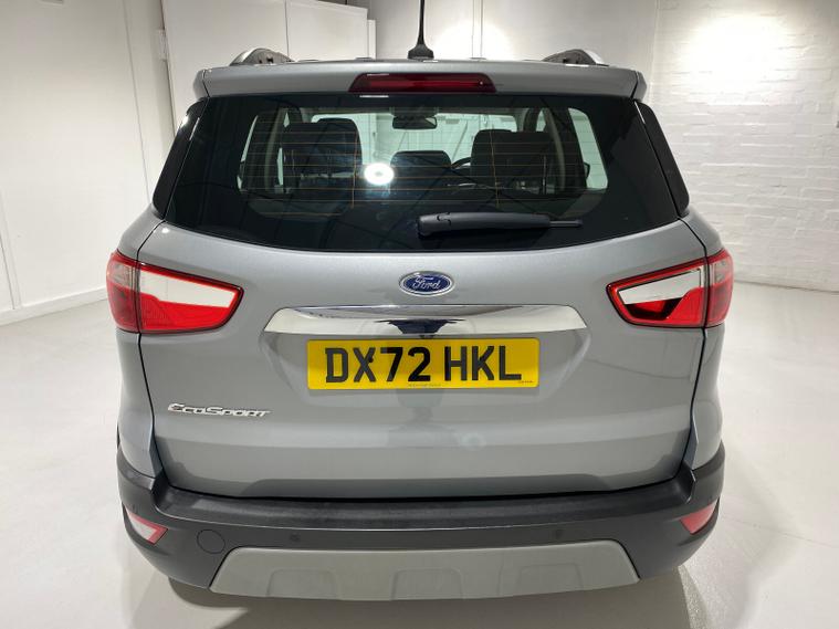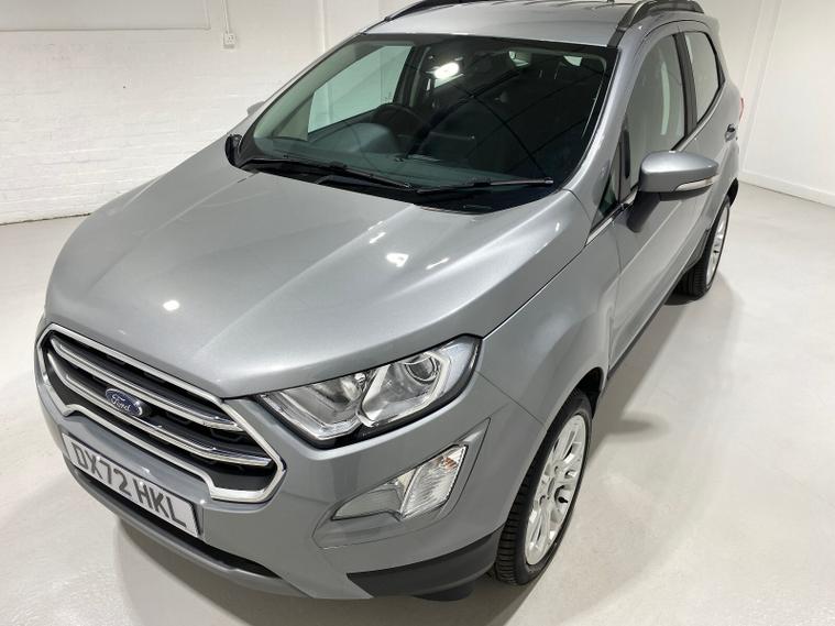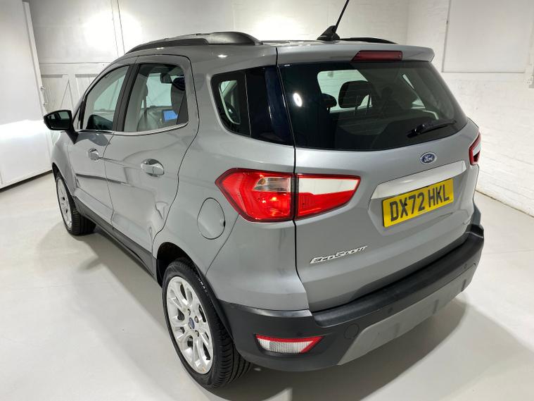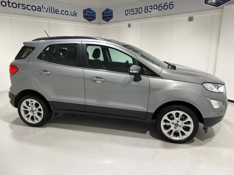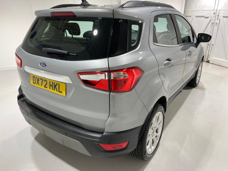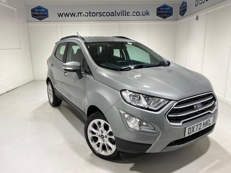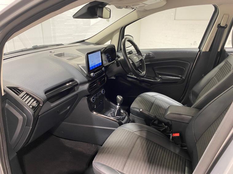 2022 72 Reg EcoSport 1.0 Turbo Ecoboost (125PS) 6 spd TITANIUM 5dr. Solar Silver metallic with Ebony part LEATHER interior, Silver roof rails, SYNC 3 DAB SATELLITE NAVIGATION with 8 inch touch screen with REAR VIEW CAMERA, REAR PARK ASSIST, 17 inch alloy wheels, tyre pressure monitoring system, Thatcham alarm, front fog lamps with cornering lights, heated front screen, remote central locking, electric front windows, ESP, Hill start assist, trip computer, ambient lighting, 17, 184 miles (DX 72 HKL).