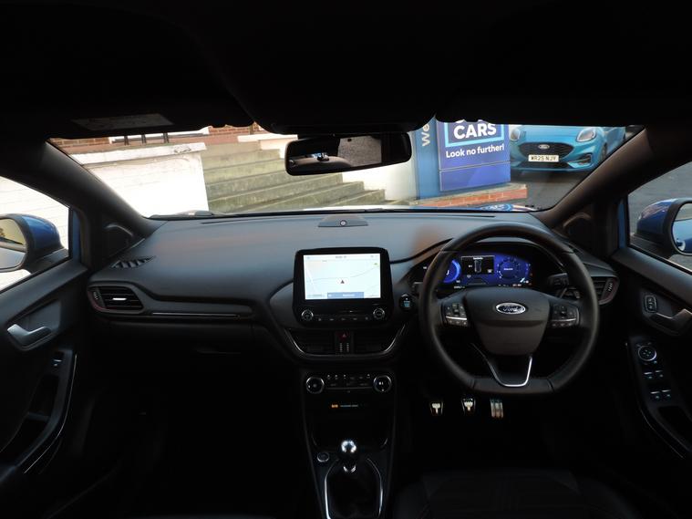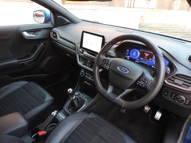 - ST-Line flat bottomed leather steering wheel with leather handbrake and aluminium gear knob