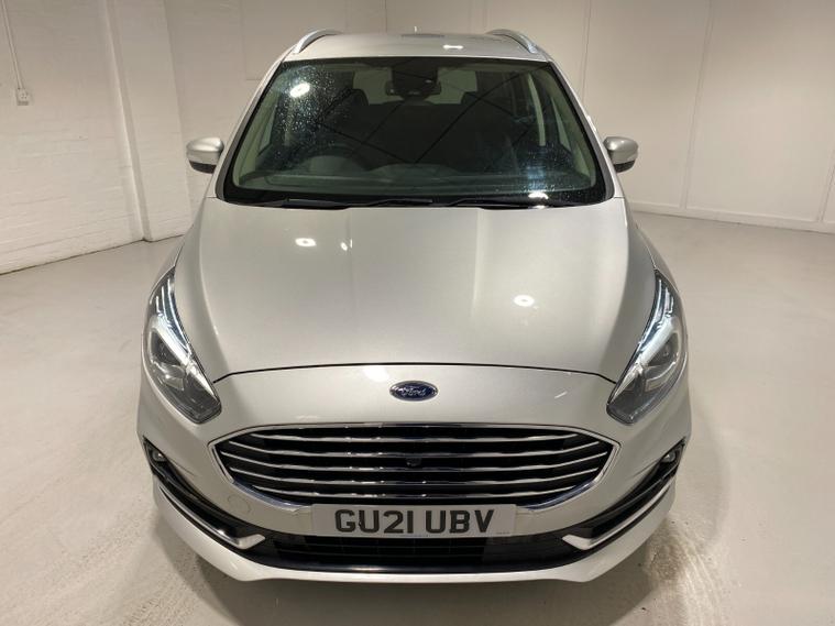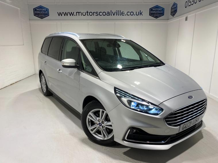 2021 21 Reg Ford Galaxy 2.0 TDCi (150PS) 8 spd Automatic TITANIUM **LUX PACK and DRIVER ASSISTANCE PACK**LOW MILES** 5dr. Moondust Silver metallic with Ebony FULL LEATHER interior, LUX PACK with ADAPTIVE LED HEADLIGHTS, FULL LEATHER SEATS, HEATED FRONT SEATS, 10 WAY POWER FRONT SEATS with DRIVER MEMORY and ELECTRIC OPENING TAILGATE, DRIVERS ASSISTANCE PACK to include SONY TOUCHSCREEN SYNC 3 DAB and NAVIGATION SYSTEM, ACTIVE PARK ASSIST with PARALLEL and PERPENDICULAR PARKING and FRONT and REAR PARKING SENSORS, ADAPTIVE CRUISE CONTROL, FRONT WIDE VIEW and REAR VIEW CAMERAS, BliS (Blind Spot Information System), Bluetooth and voice control, KEYLESS ENTRY, FRONT and REAR PARKING SENSORS, Electric handbrake, Lane Keeping Aid, Traffic Sign recognition, power start button, Dual Zone ATC AIR CONDITIONING, power easy fold flat 3 row seats, cruise control with speed limiter, PRIVACY glass, auto wipers and lights, IPS system, ESP, Tyre Pressure monitor system, power front and rear windows with global closing, quickclear heated windscreen, remote locking, Thatcham alarm, ABS, 6, 169 miles (GU 21 UBV).
