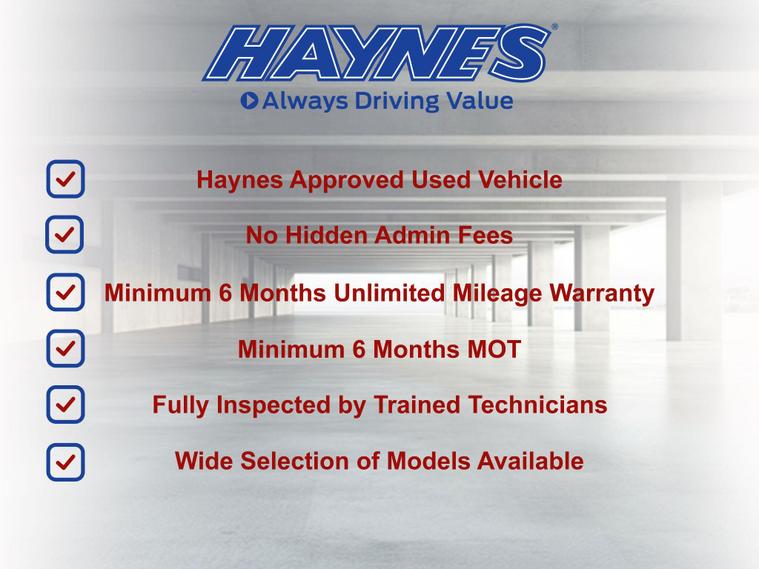 HAYNES VALUE USED CAR. WE DO NOT CHARGE ANY ADMIN FEES. Comes with a minimum 6 Months Warranty, Haynes Value 41 Multi-Point Inspection and Full Provenance Check. PLEASE NOTE: The standard equipment listed details the usual specification of the most recent model of this vehicle. It is not the exact data for the actual vehicle being offered for sale and actual specification may vary slightly. Some of our used vehicles have been company cars and may have had multiple users. We recommend that you always view the car and check you are happy with the individual vehicle prior to purchase. CALL US TODAY TO ARRANGE A TEST DRIVE.