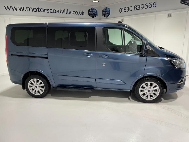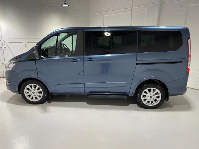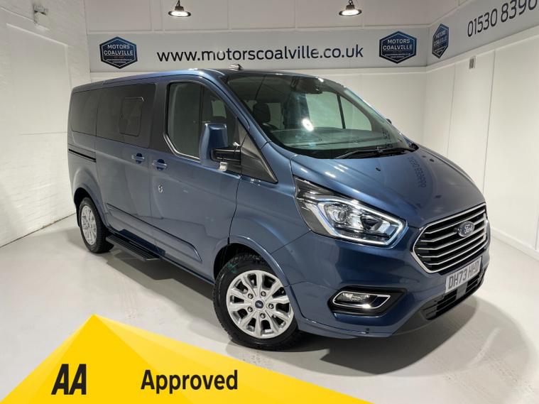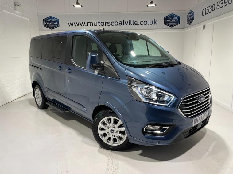 2023 73 Reg Ford Tourneo Custom 320 EcoBlue 2.0 TDCi (130PS) Automatic L1 TITANIUM **8 SEATER***. Chrome Blue metallic with charcoal cloth interior, HEATED FRONT SEATS, ADAPTIVE CRUISE CONTROL, 16 inch alloy wheels, FRONT and REAR PARKING SENSORS, Ford SYNC 3 TOUCHSCREEN SATELLITE NAVIGATION with Apple CarPlay and Android Auto, Bluetooth USB, DAB, remote central locking, front electric windows, privacy glass, electrically operated, heated and power folding mirrors, auto lights and wipers, LED daytime running lights, front fog lights, quickclear heated front windscreen, 4, 617 miles (DH 73 HHD).