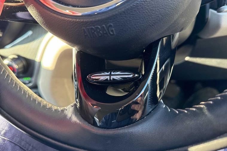 - MINI Yours fine walk nappa leather steering wheel with contrast stitching in silver and MINI Yours badge